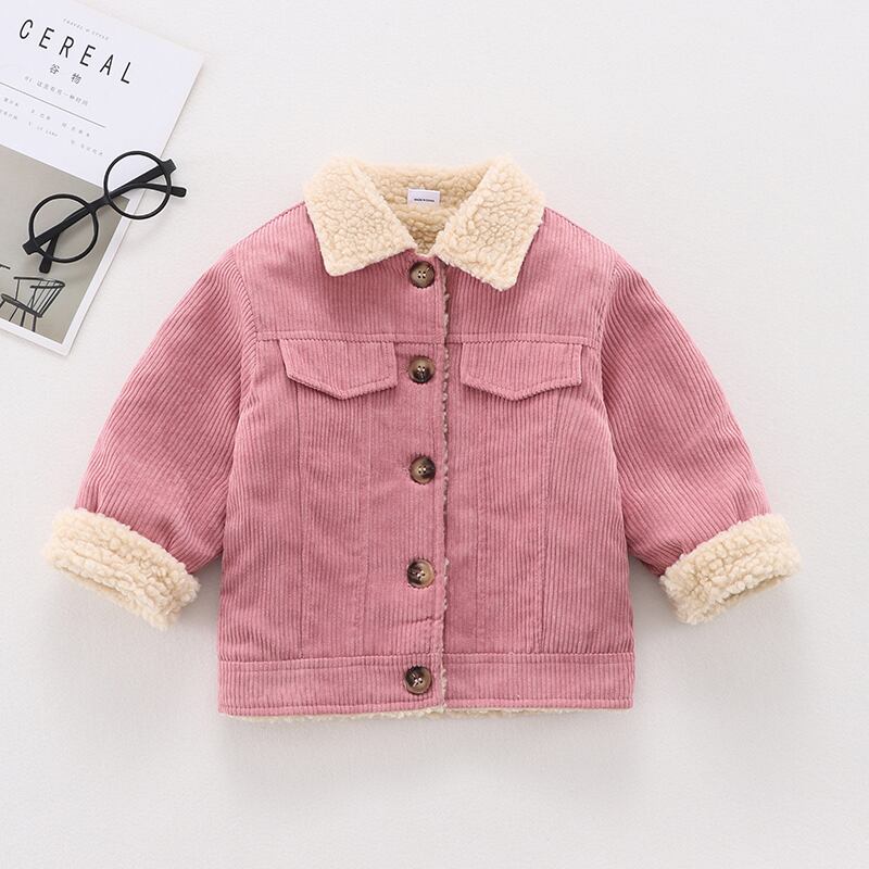 新作 PatPat 幼児の女の子/男の子のコートラペル襟ボタン裏毛コート子供の冬の上着暖かい服
