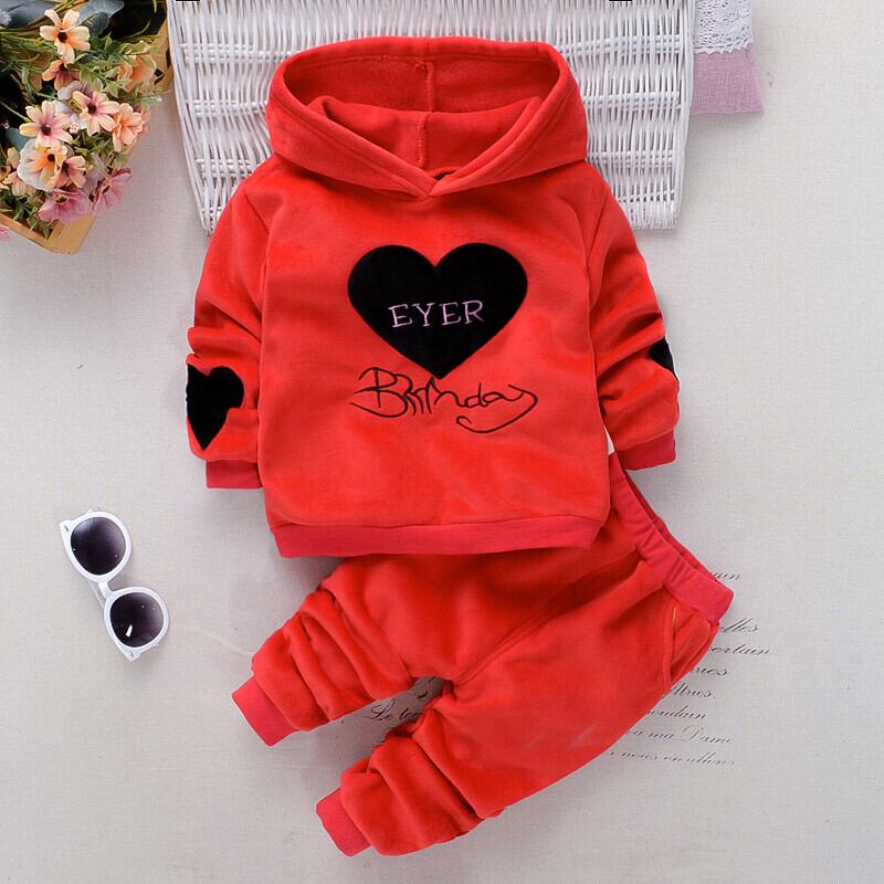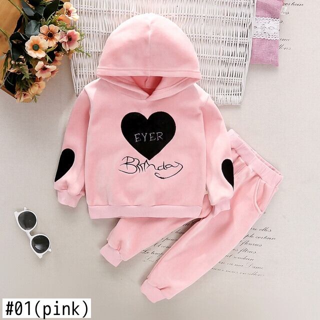 新作 PatPat 春 2 個女の赤ちゃん甘いハート型の赤ちゃんのセットフード付き暖かい秋冬長袖幼児服