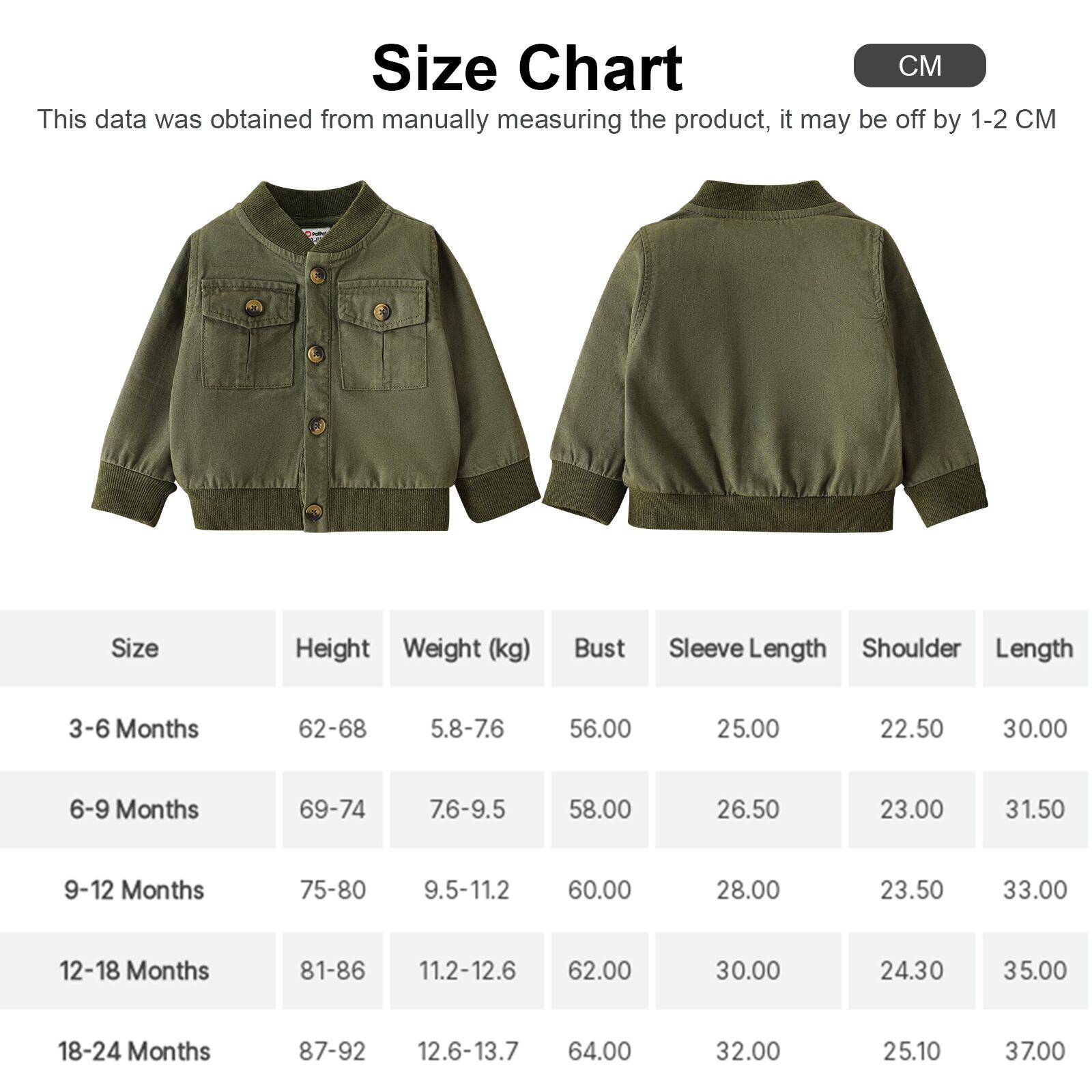 新作 PatPat 100% コットン ベビー ボーイ ボタン フロント アーミー グリーン ロングスリーブ ジャケット