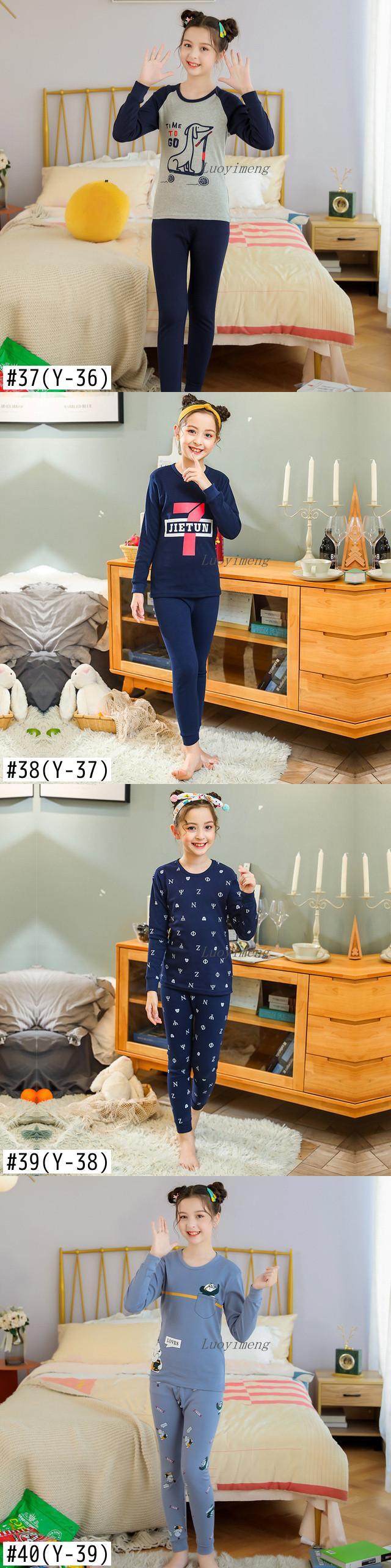 新作 秋のホーム服子供セットビッグ女の子パジャマセット十代の若者たちの綿パジャマフルスリーブパジャマボーイズガールズナイト服