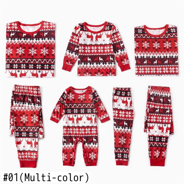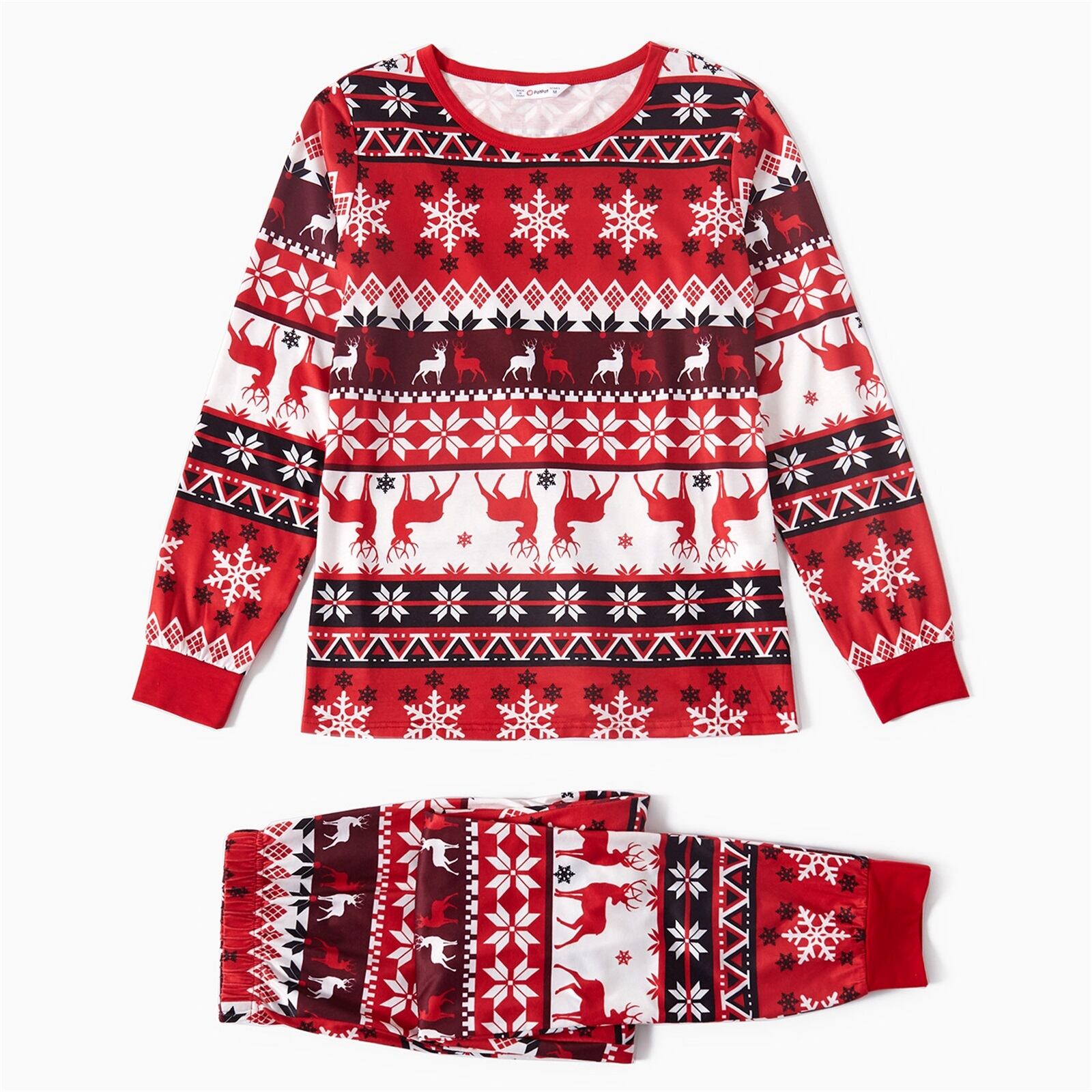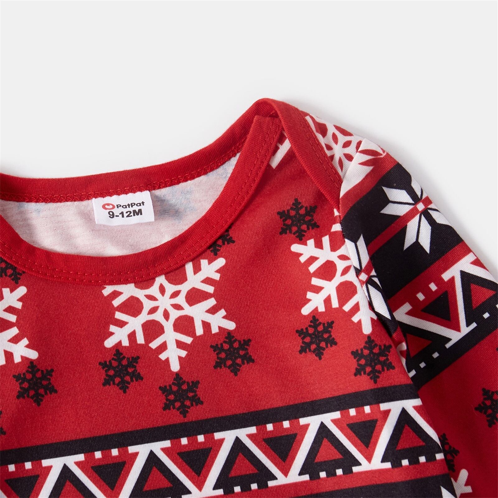 新作 PatPat クリスマス オールオーバー スノーフレークプリント レッド 家族お揃い長袖パジャマセット (防炎)