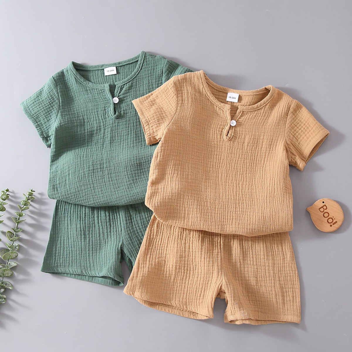新作 PatPat 2点セット 幼児 男の子/女の子 無地 半袖Tシャツとショーツ/パンツセット キッズ 夏服