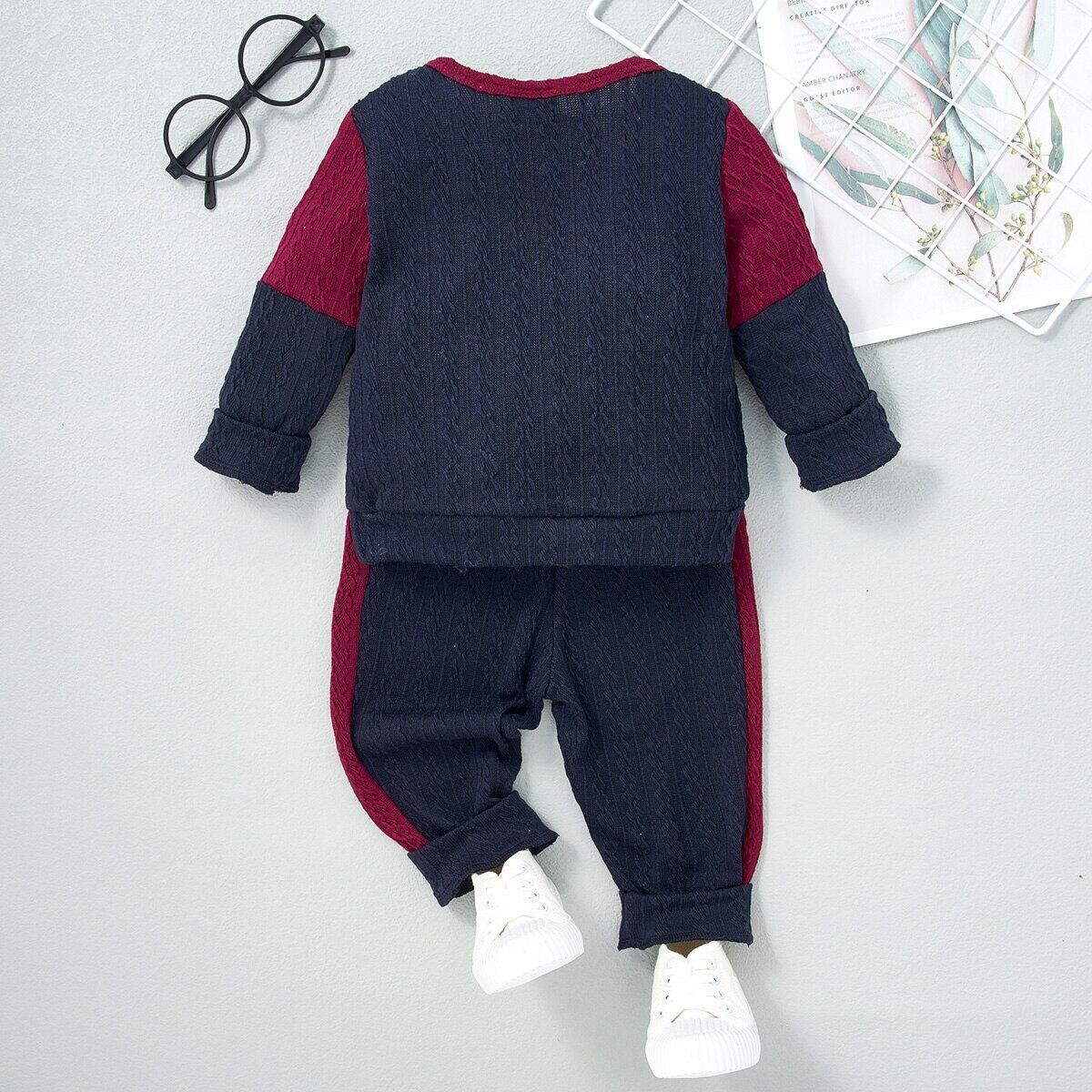 新作 PatPat 2ピース ベビー 男の子/女の子 レター刺繍 カラーブロック 長袖 プルオーバーとズボンセット