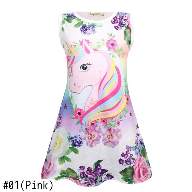新作 PatPat 夏 可愛い ユニコーン と フラワー プリント ノースリーブ ドレス キッズ 子供服