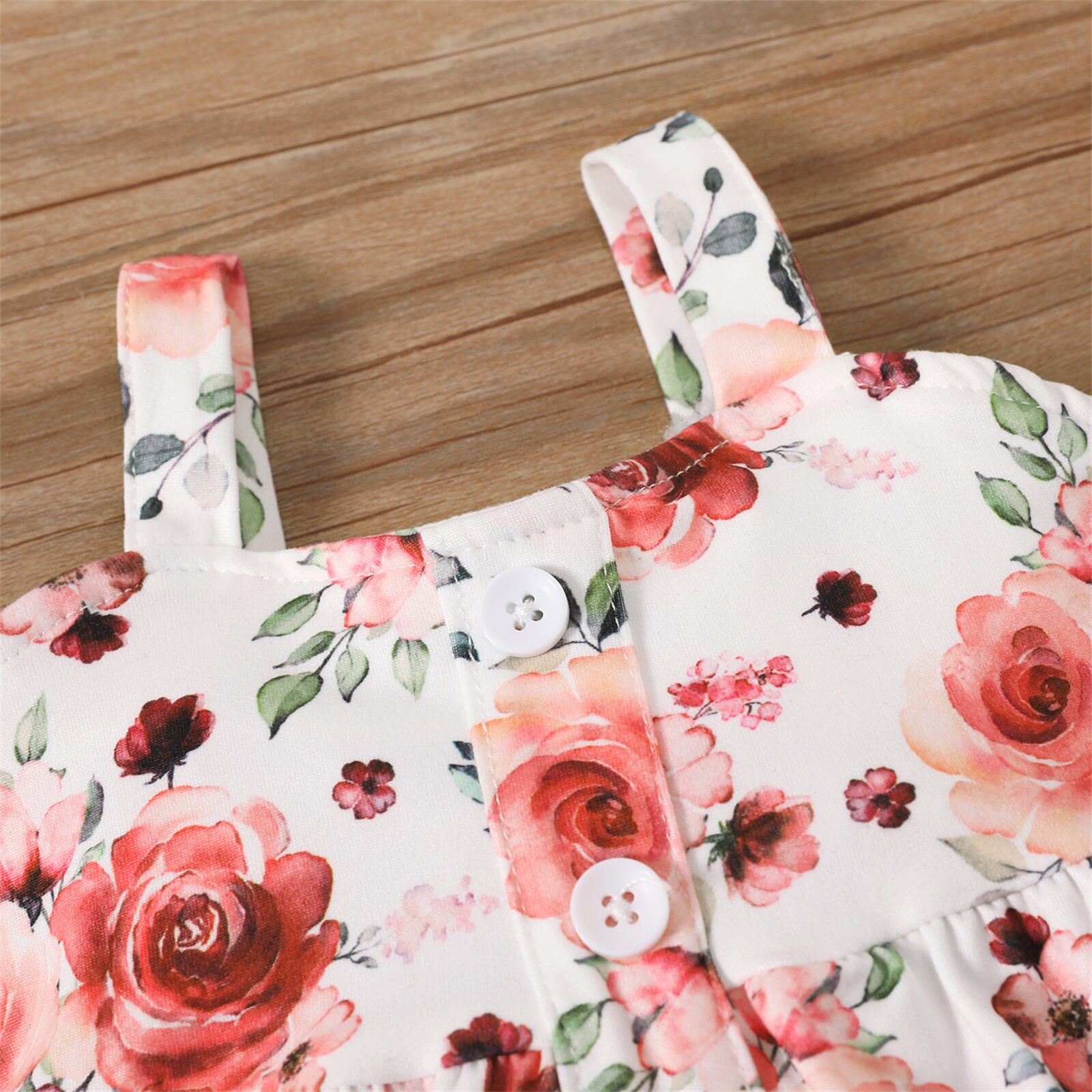 新作 PatPat 2ピース ベビーガール フローラルプリント ノースリーブ スパゲッティストラップトップとソリッドショーツセット