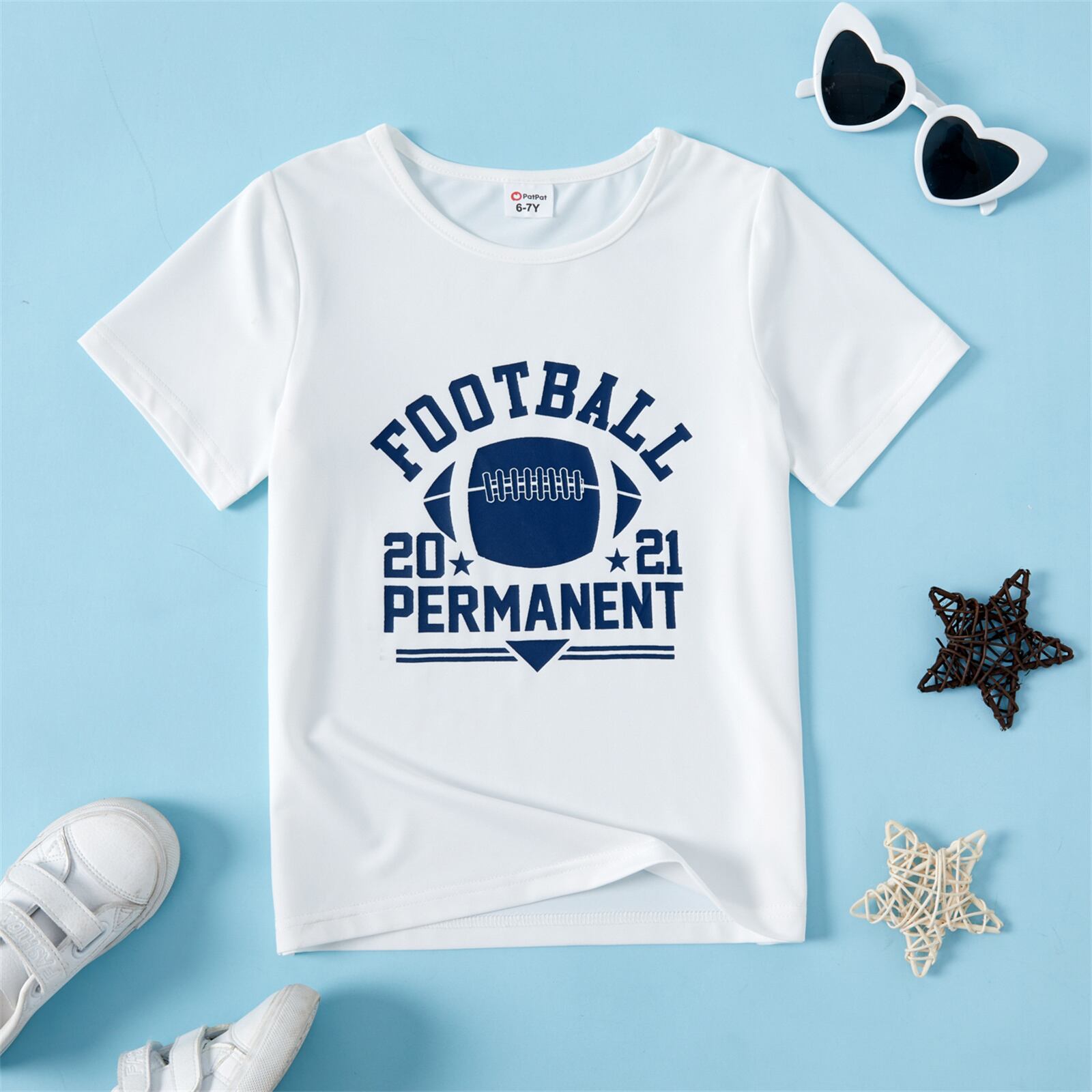 新作 PatPat トレンディ キッド ボーイ レター フットボール ナンバー プリント ホワイト Tシャツ