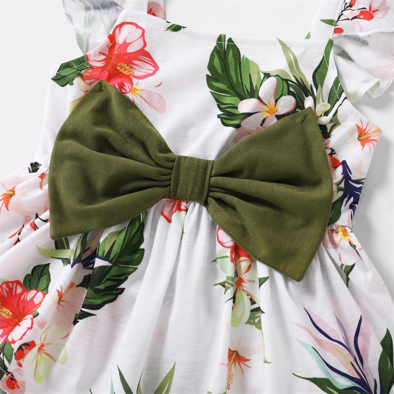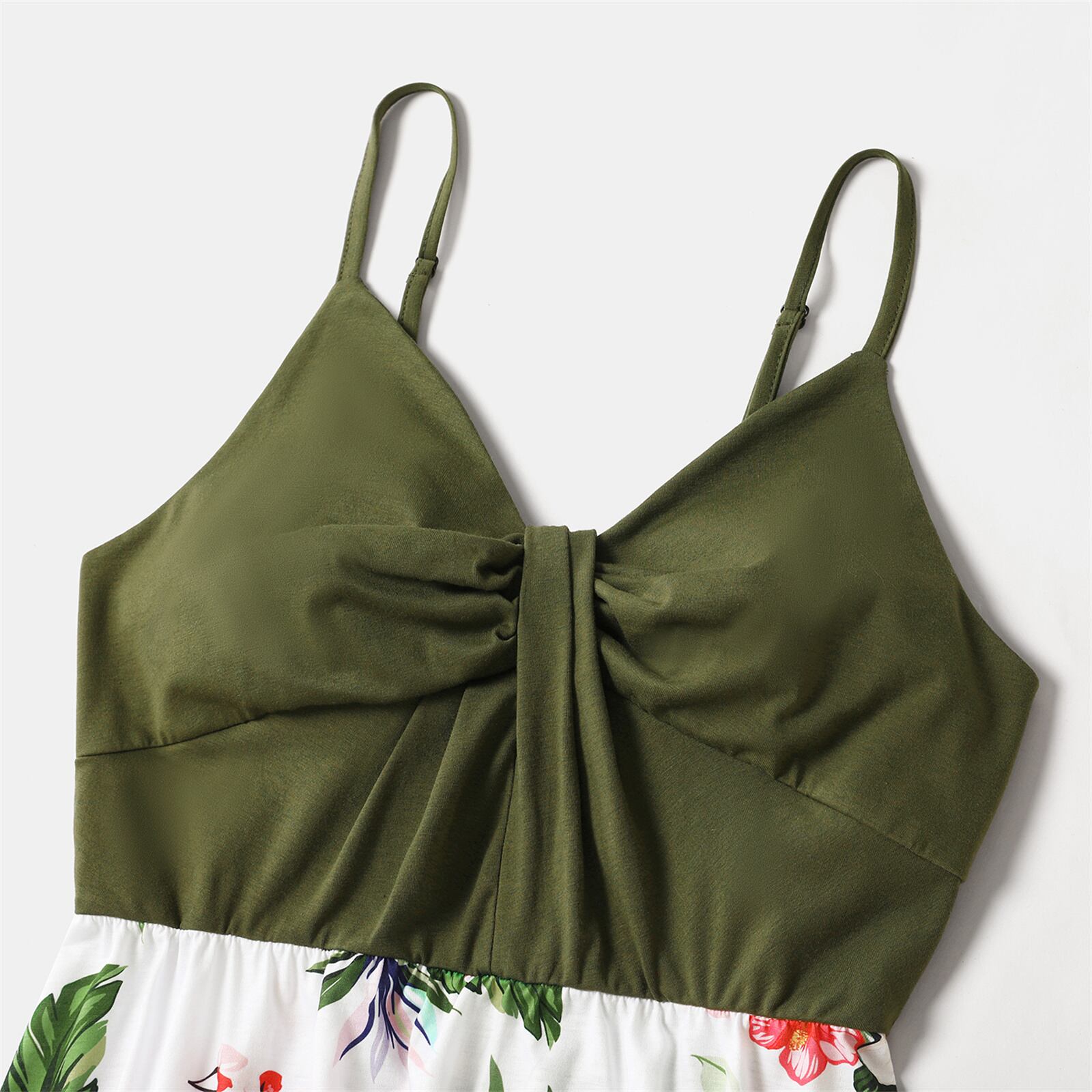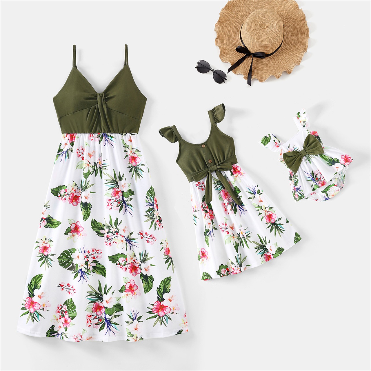 新作 PatPat ソリッド スパゲッティ ストラップ ツイスト ノット V ネック スプライシング フローラル プリント ドレス ママと私