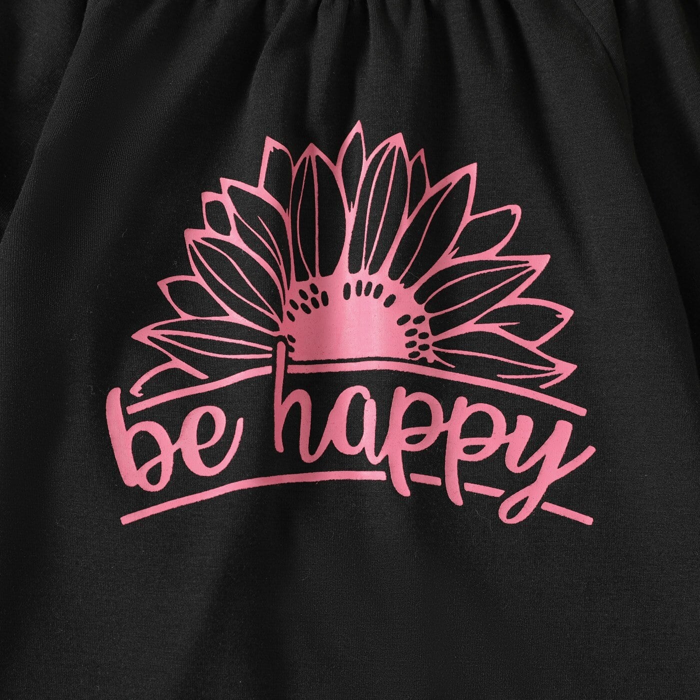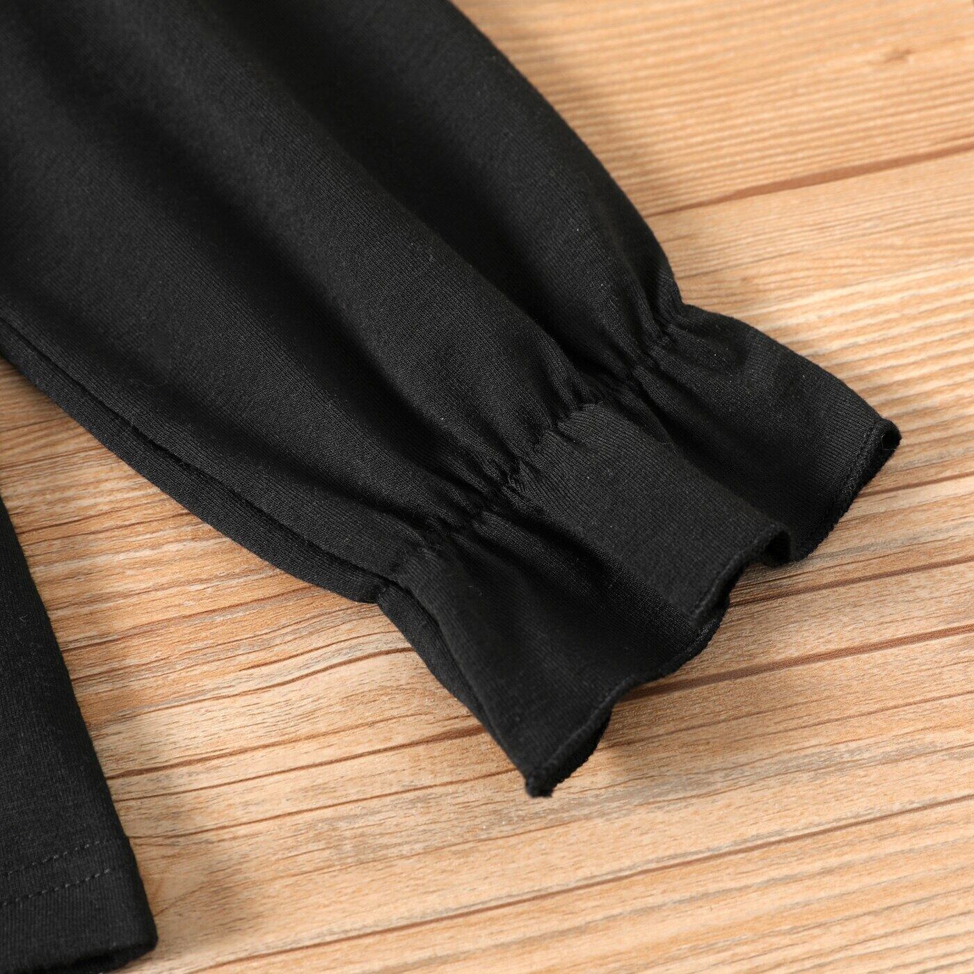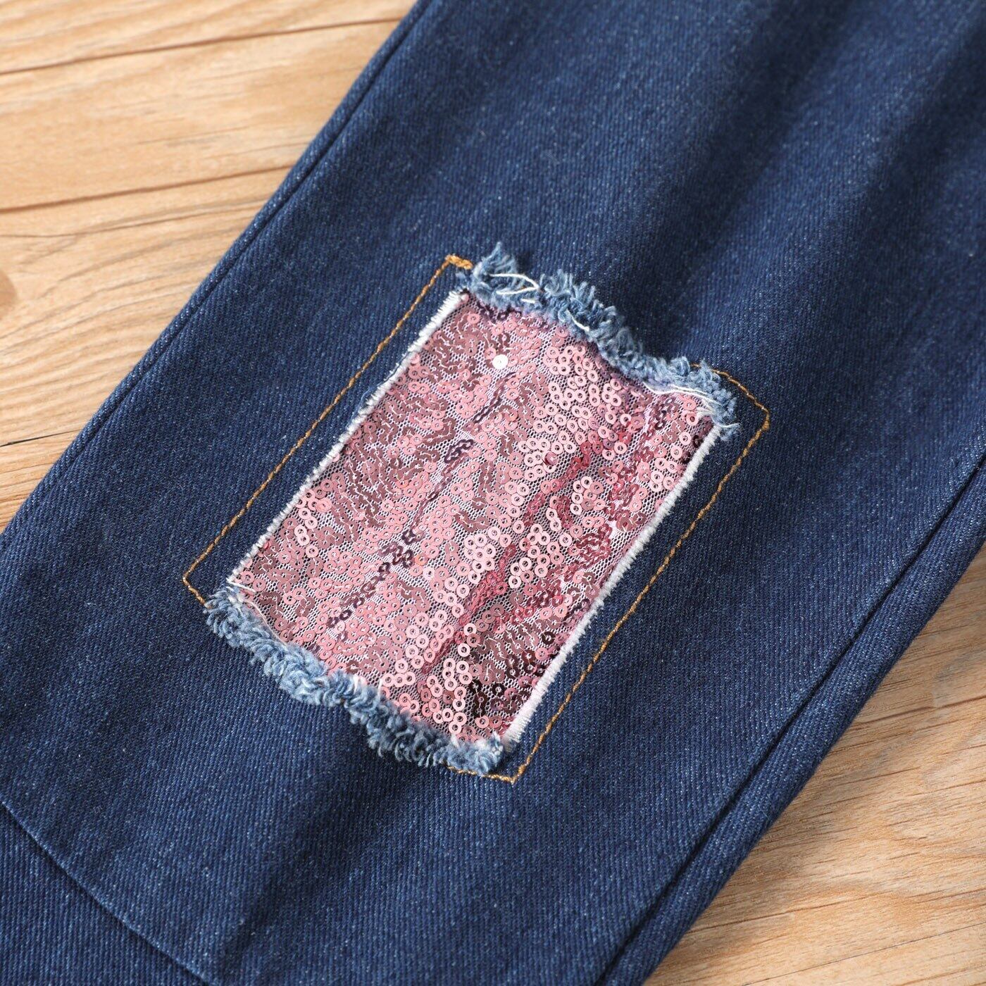 新作 PatPat 2 ピース キッド ガール レター フローラル プリント フリル スリーブ ブラック トップとスパンコール パッチワーク フレア デニム ジーンズ セット