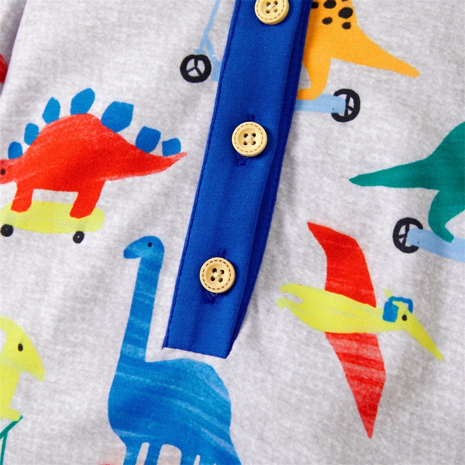 新作 PatPat ベビー 男の子 オールオーバー カートゥーン 恐竜 プリント グレー 長袖 ジャンプスーツ