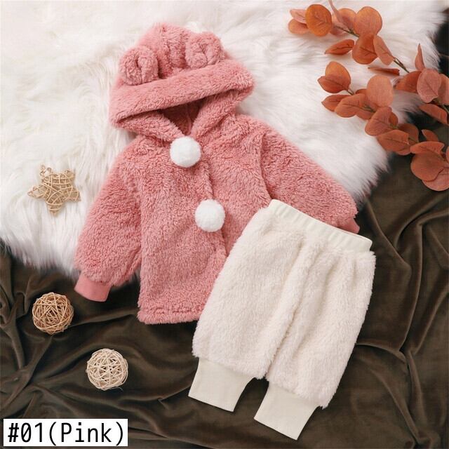 新作 PatPat 2 個ベビー固体 3D 耳フード付きポンポン長袖厚くファジーフリース生き抜くとズボンセット