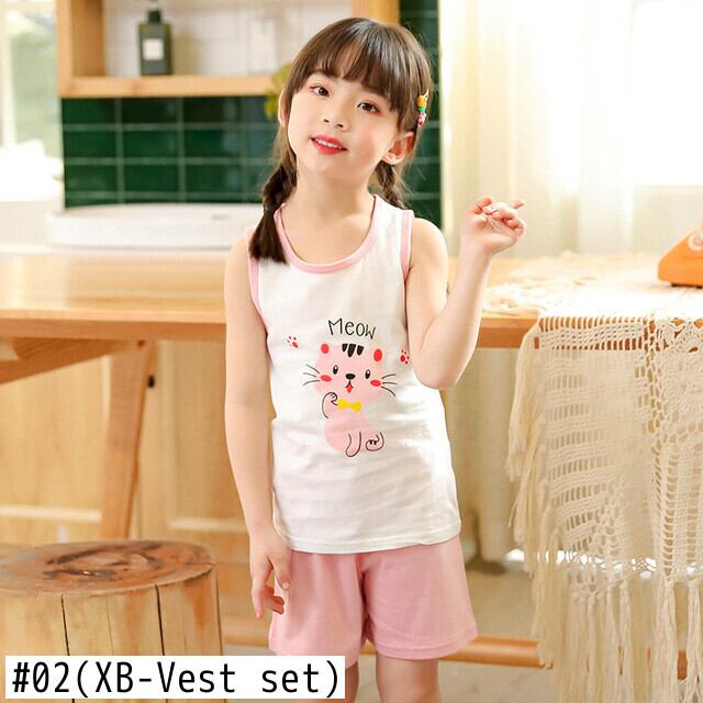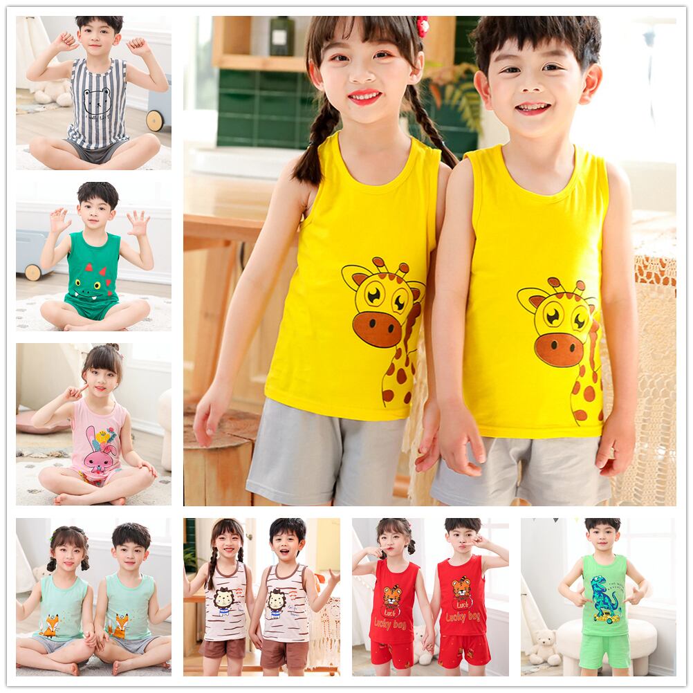 新作 夏の少年少女服コットンパジャマベビーナイトウェアノースリーブパジャマキッズコットン子供セット 2 4 6 8 9Years