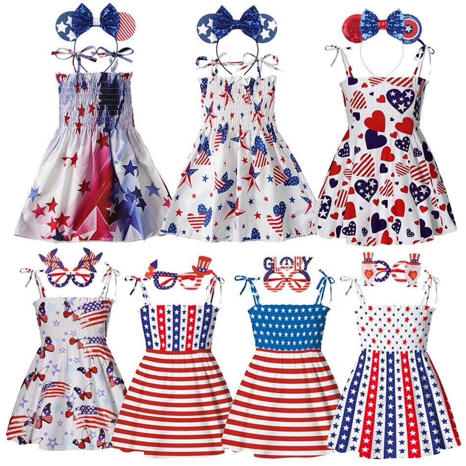 新作 幼児の女の子の独立記念日 7 月 4 日ドレス衣装夏の子供 1-6 歳