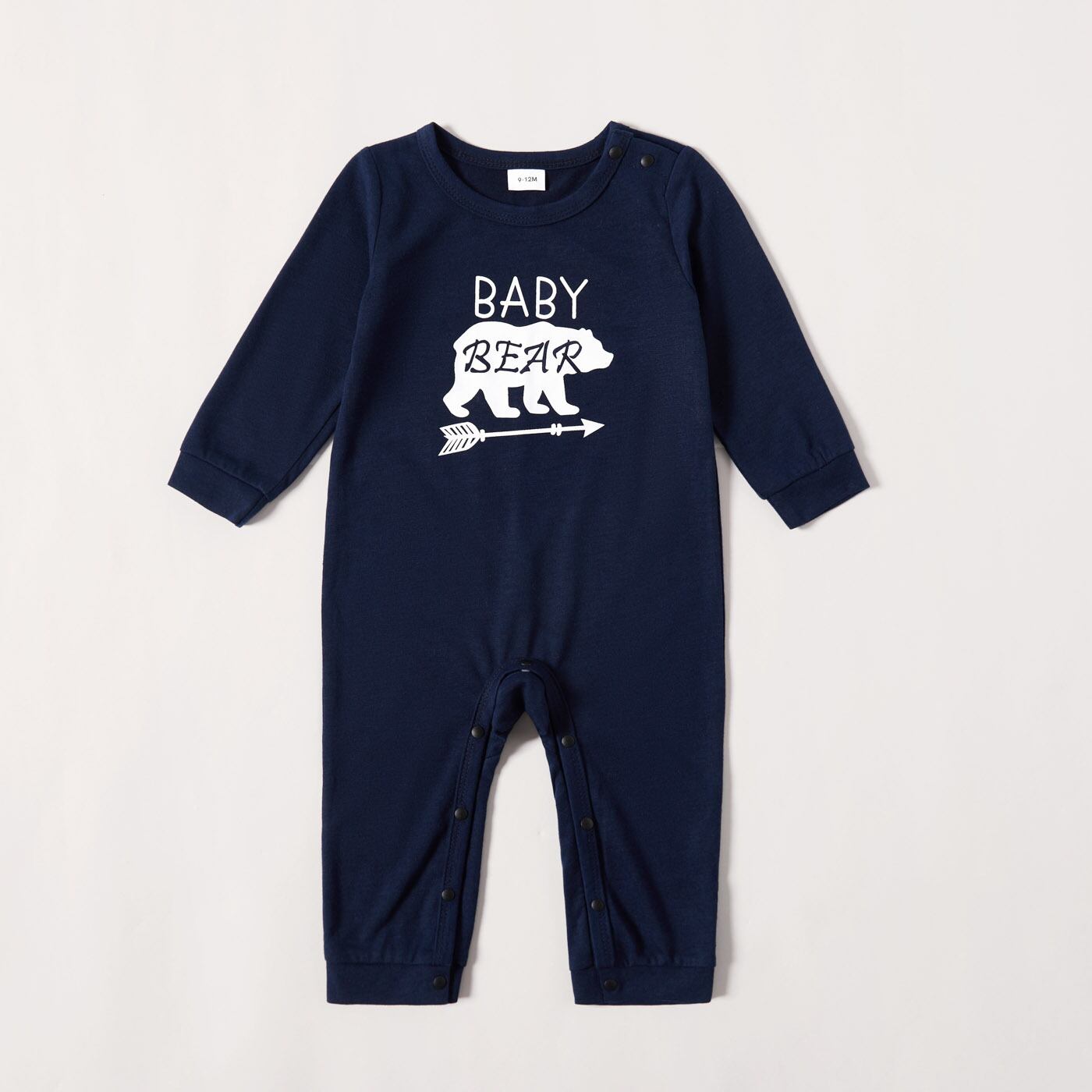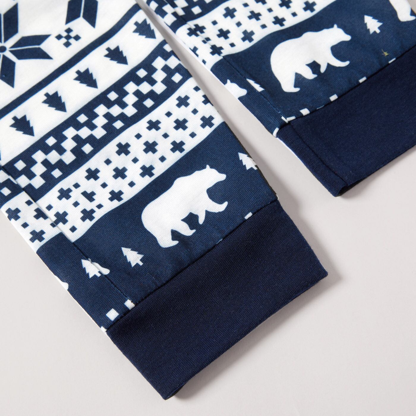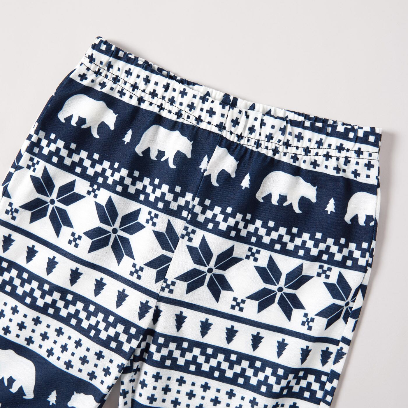 新作 PatPat クリスマス シロクマとレタープリント ダークブルー 家族おそろい長袖パジャマセット (防炎)