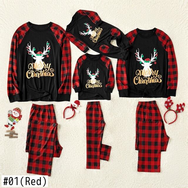 新作 PatPat メリー クリスマス レター アントラー プリント チェック柄 スプライス マッチング パジャマ セット ファミリー (難燃性)