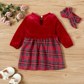 新作 PatPat 2-pcs 女の赤ちゃん チェック柄 スイート ドレス コットン 長袖 幼児服
