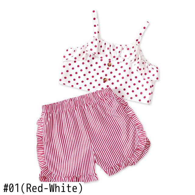 新作 PatPat 2 ピース キッド ガール 水玉 フリル ボタン キャミソールとストライプ ショーツ セット
