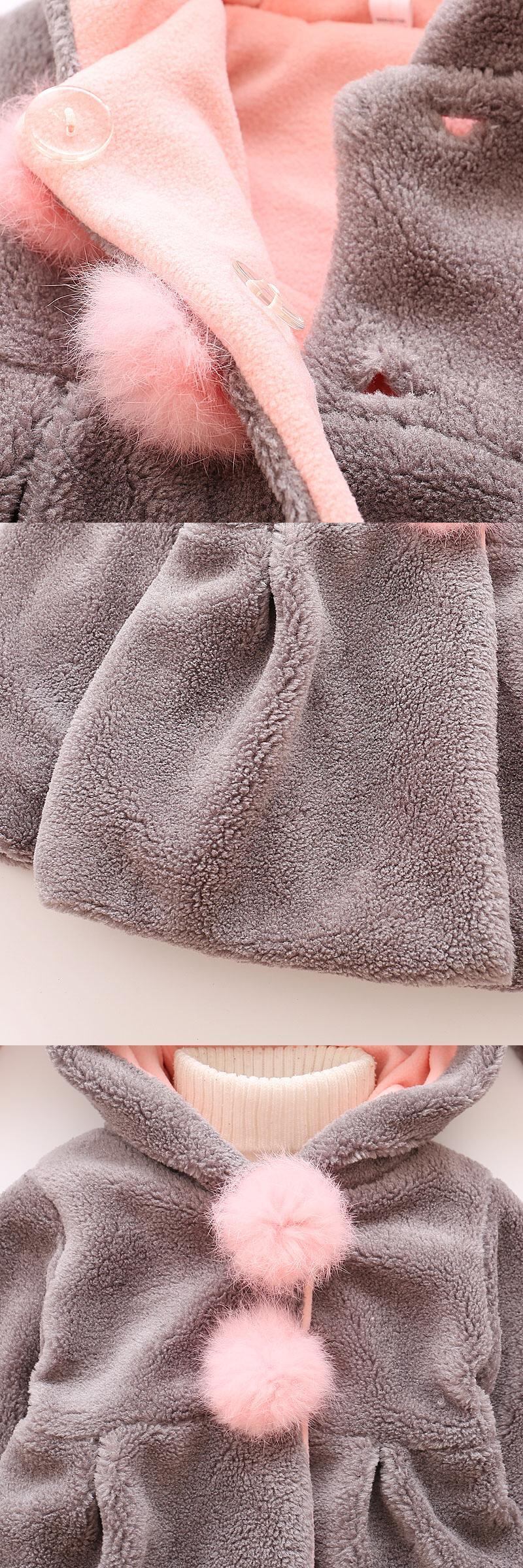 新作 PatPat 2020 春と秋のベビー幼児の女の子愛らしいバニーの耳の装飾ポンポン無地フリース暖かいフード付きコート
