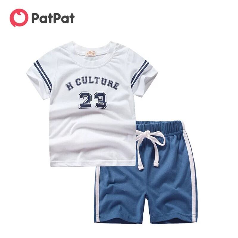 新作 PatPat 子供用 サマースーツ 半袖 ショーツ 英数字プリント 男の子 女の子 セット