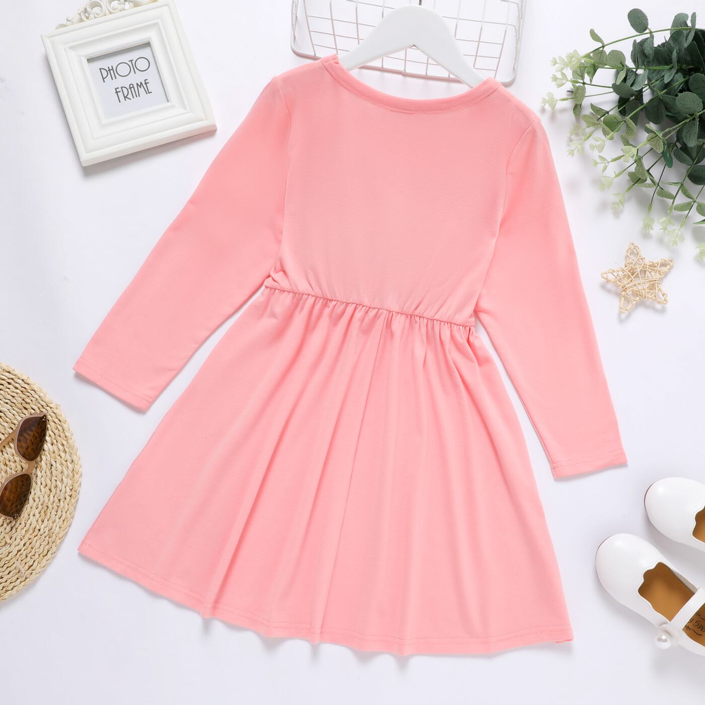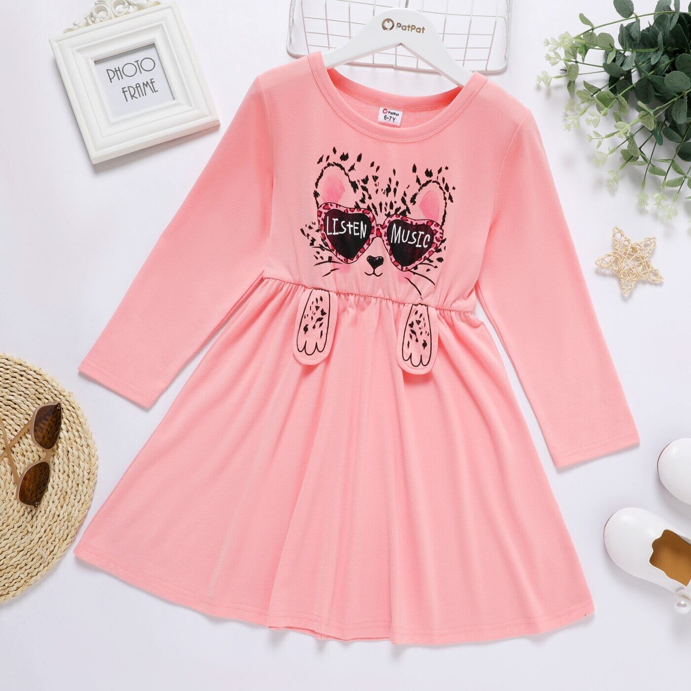 新作 PatPat キッド ガール レター アニマル 猫 プリント 耳 長袖 ピンク ドレス