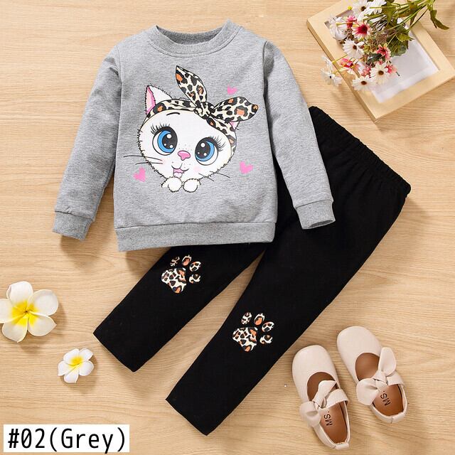 新作 PatPat 2ピース 幼児 女の子 猫柄 プルオーバー スウェットシャツ ヒョウ柄 パンツ セット