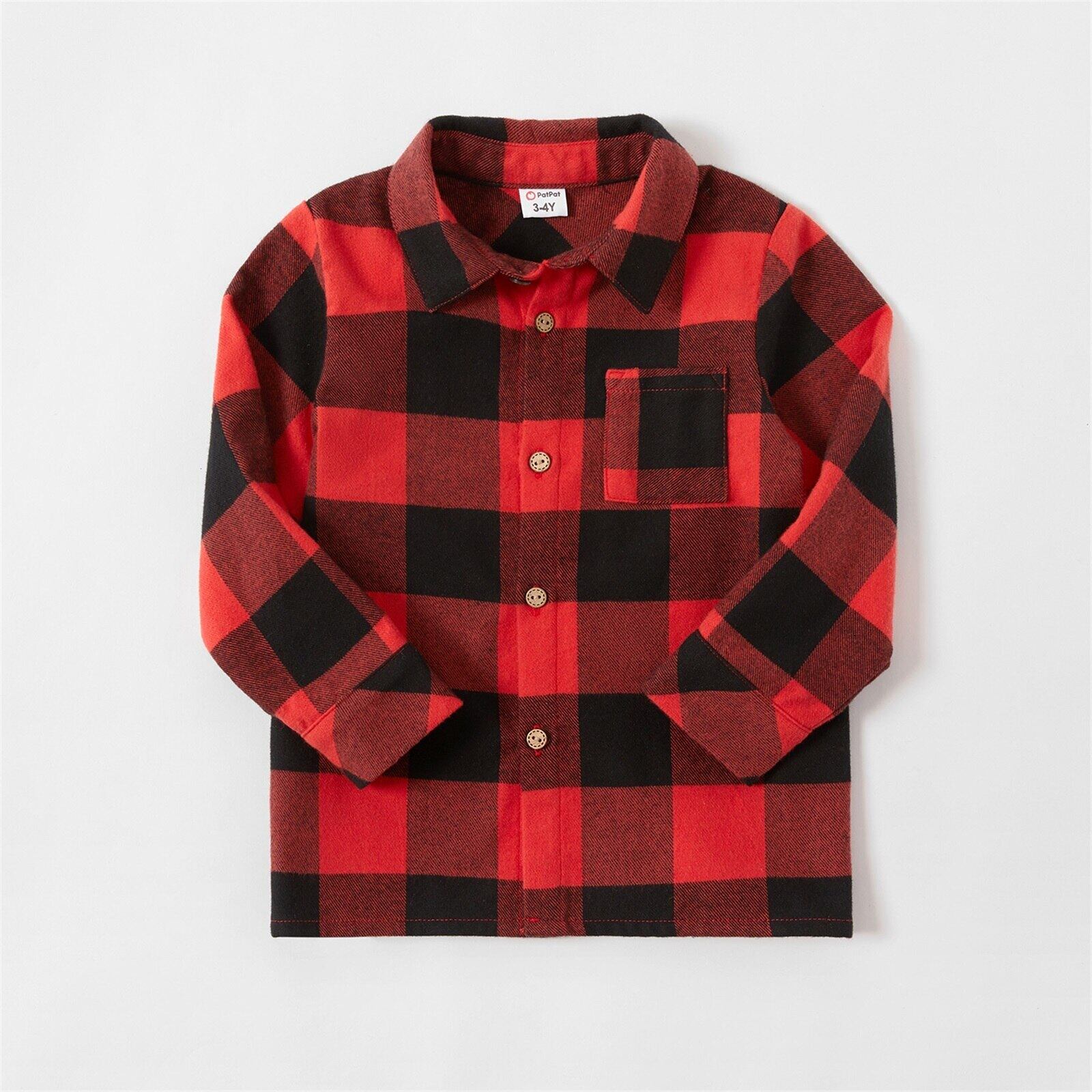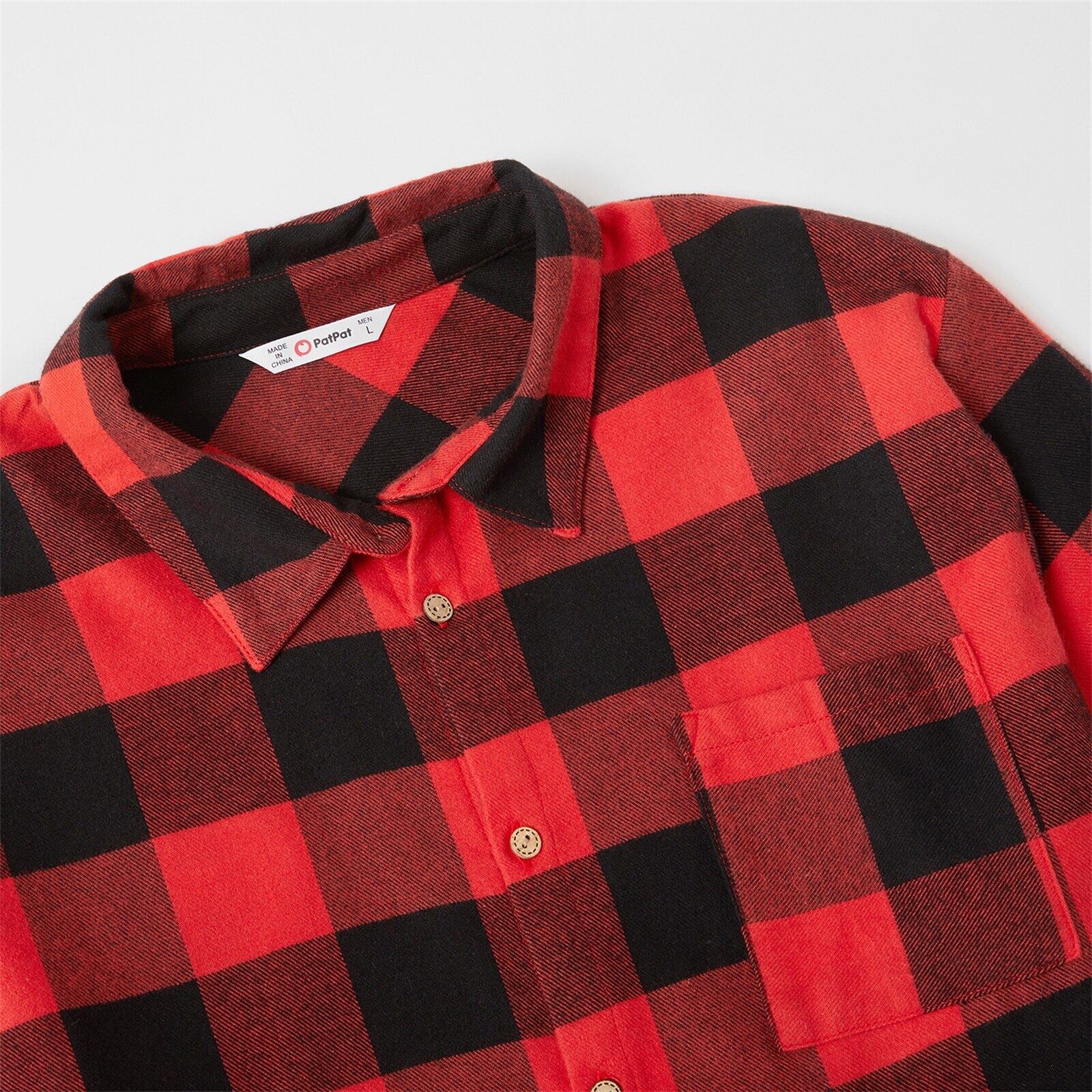 新作 PatPat Mosaic ファミリーマッチングコットンクリスマスセット(ちょう結びタンクドレス - チェック柄ボタンフロントシャツ - ロンパース)