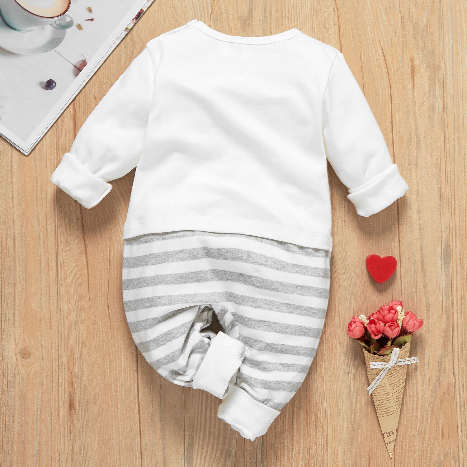 新作 PatPat 2020 春夏 秋 I Love Baba and Mama ストライプ ワンピース ベビー 男女兼用