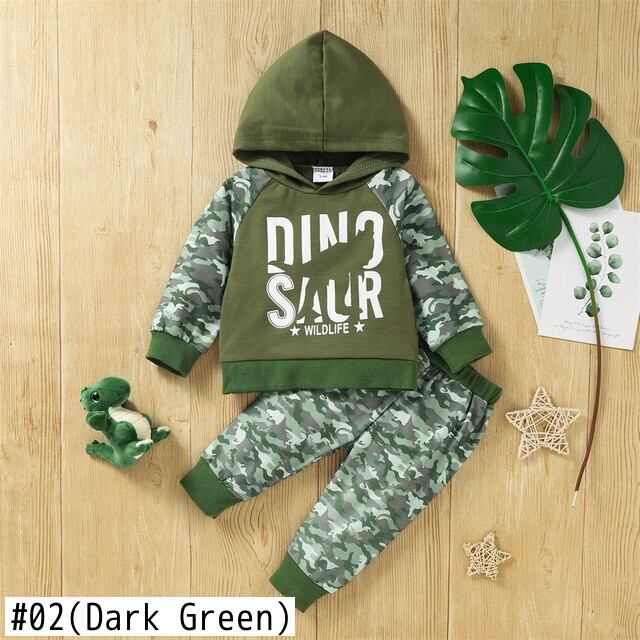 新作 PatPat 2pcs ベビー カモフラージュ レタープリント フード付き 長袖 スウェットシャツ セット