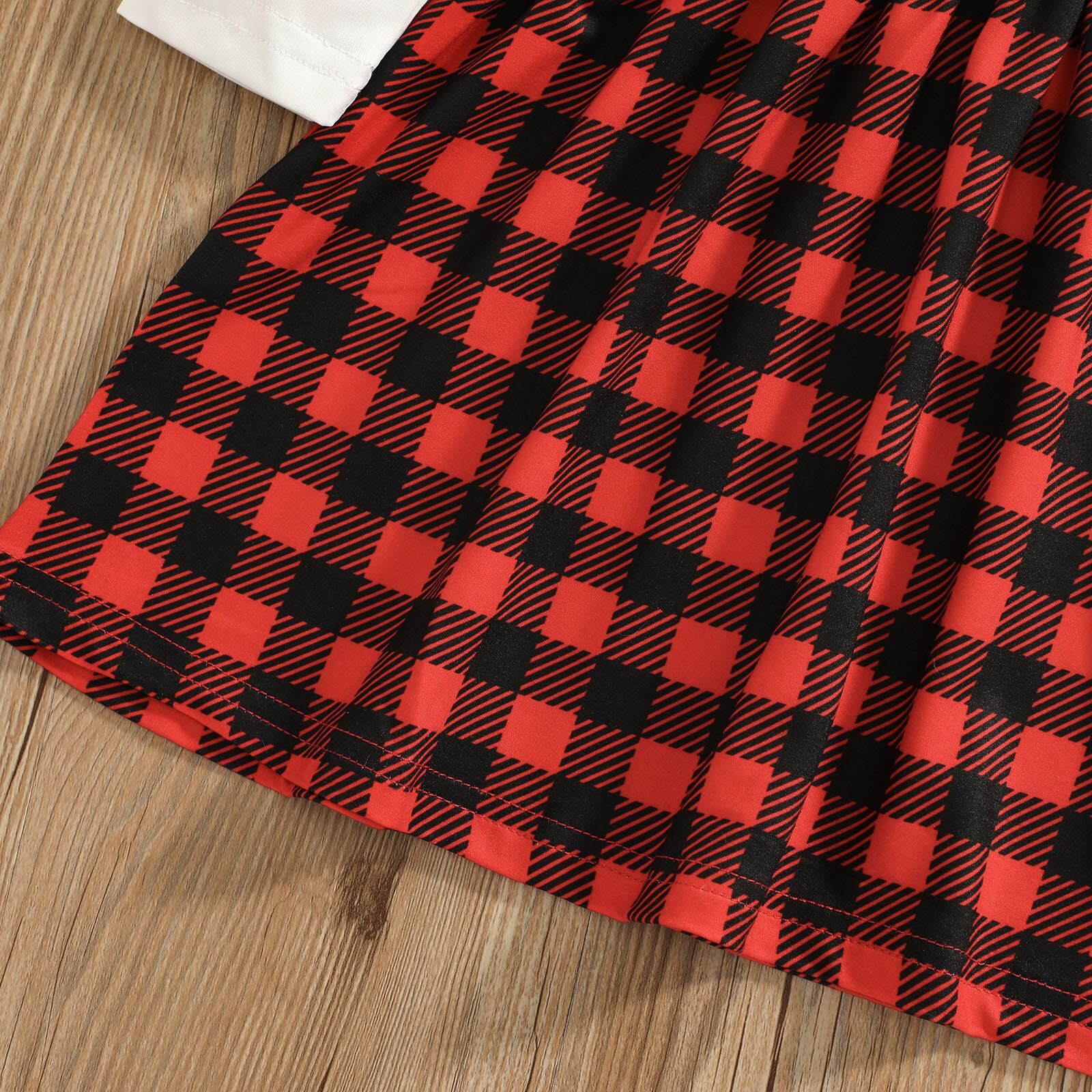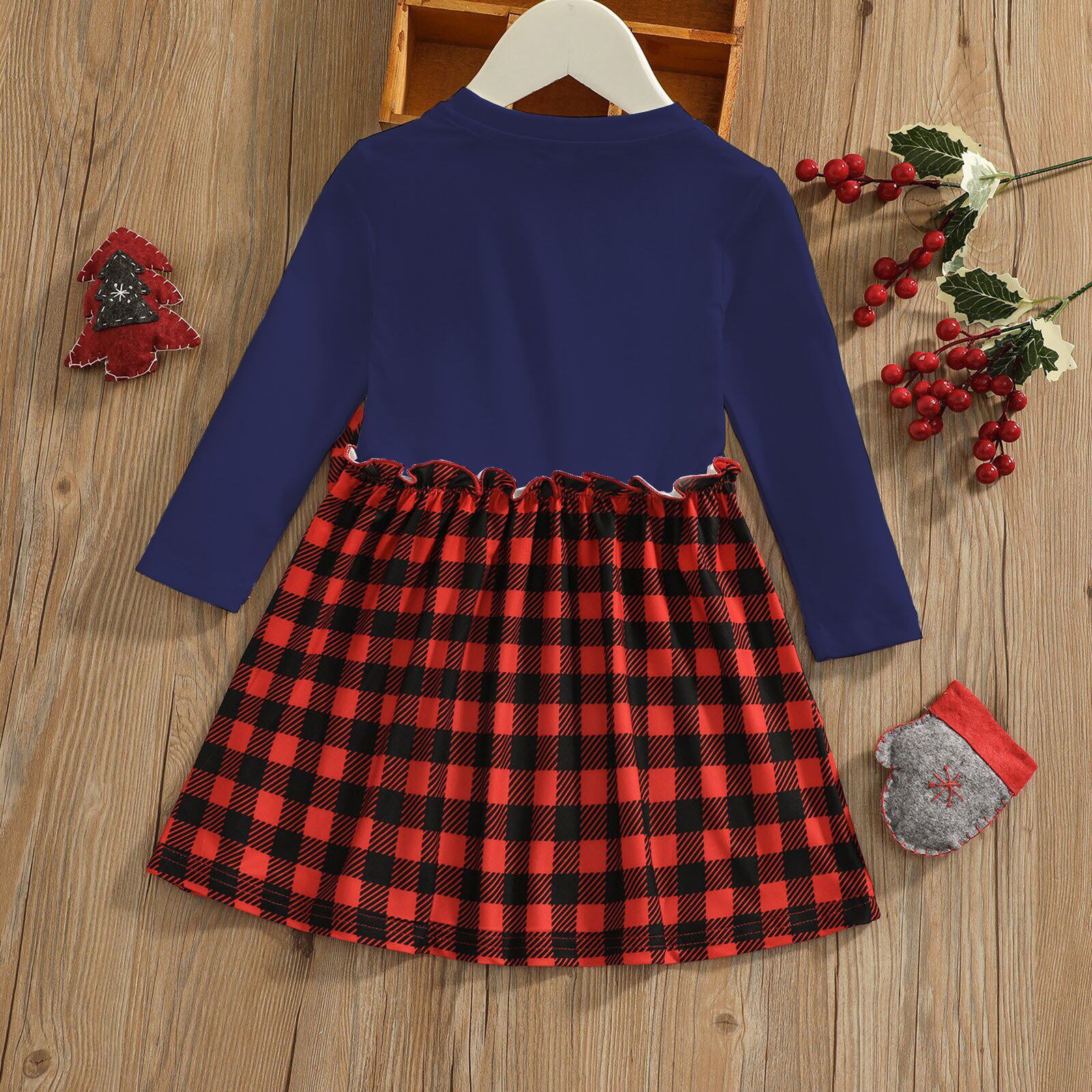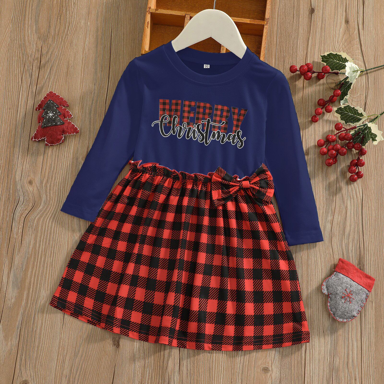 新作 PatPat Kid Girl 100% コットン クリスマス レタープリント ちょう結び チェック柄 スプライス 長袖ドレス