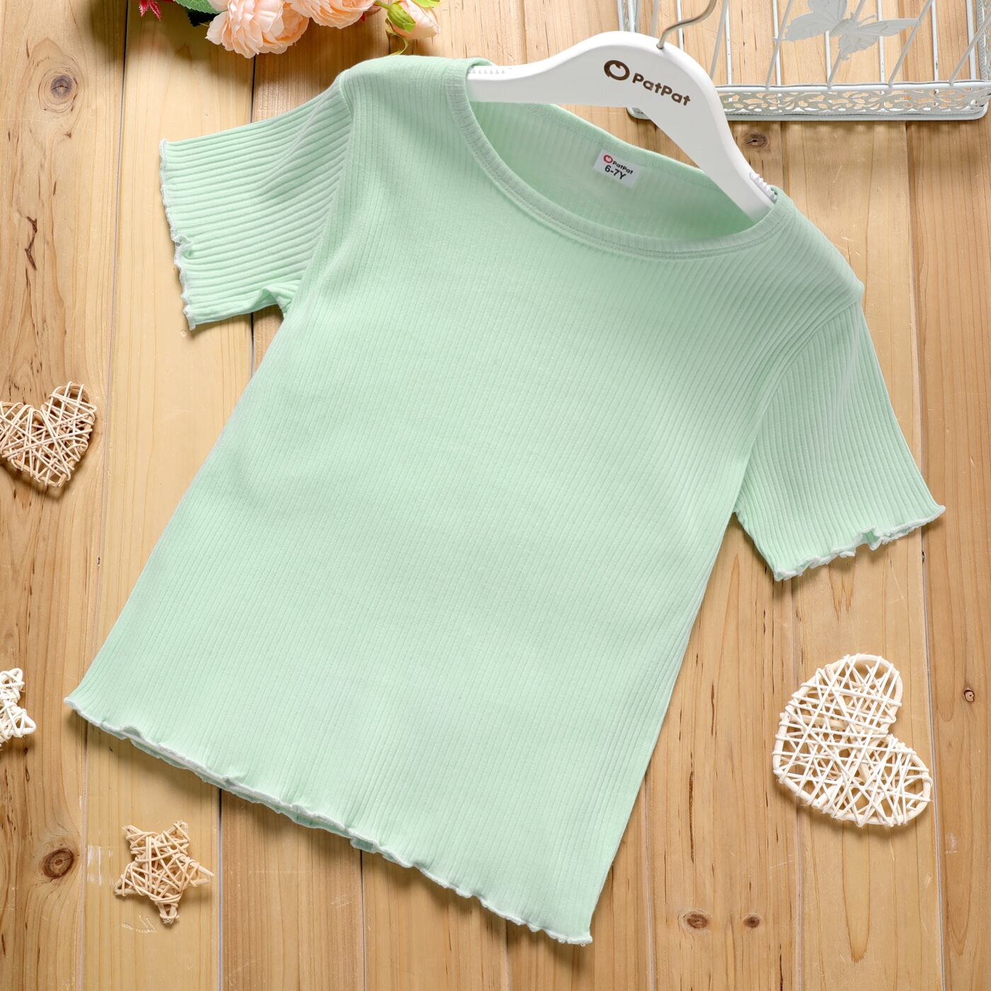 新作 PatPat Kid Girl 無地リブレタストリム半袖Tシャツ