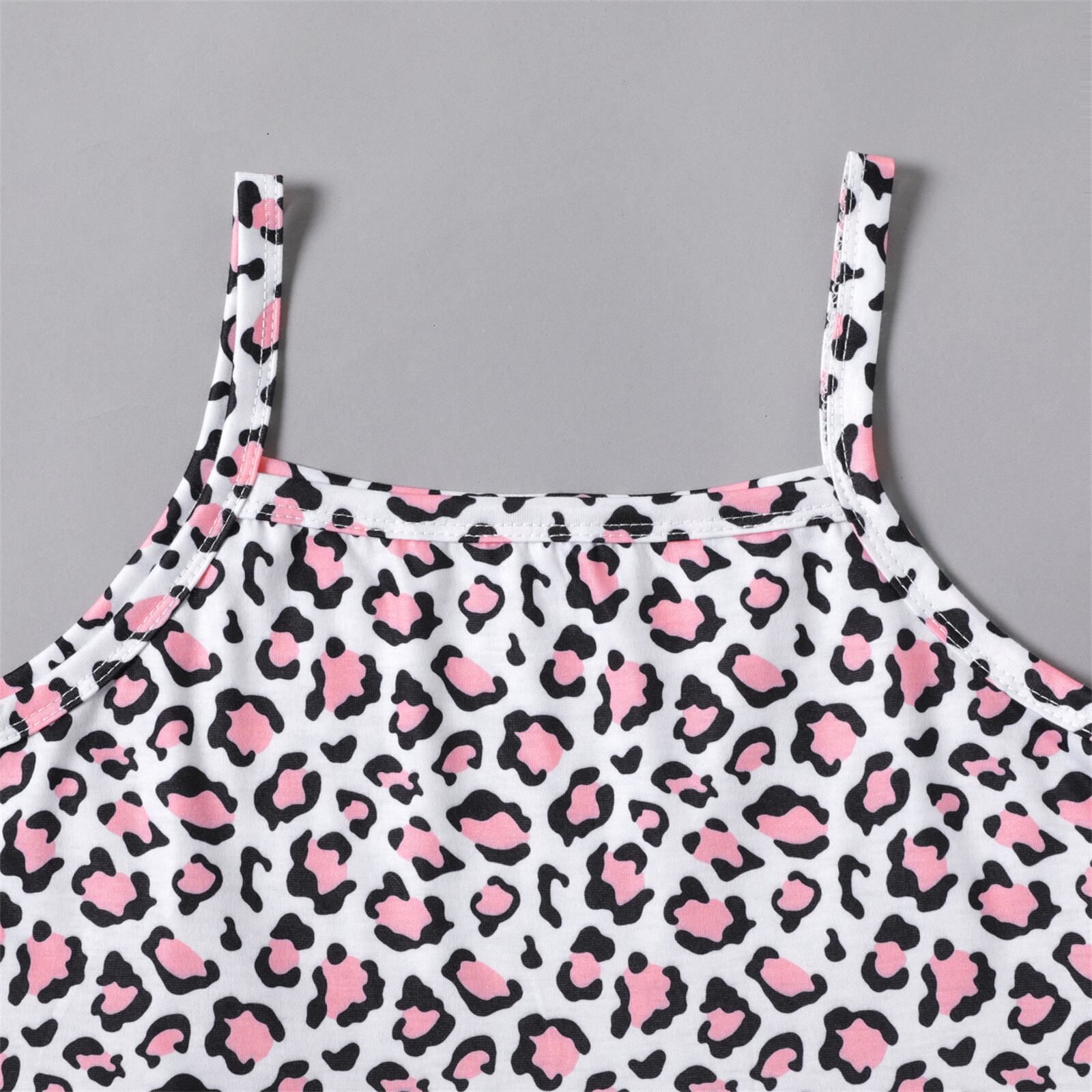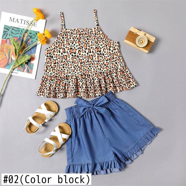 新作 PatPat 2 ピース キッド ガール レオパード プリント フリル ヘム キャミとちょう結びデニム ペーパーバッグ ショーツ セット