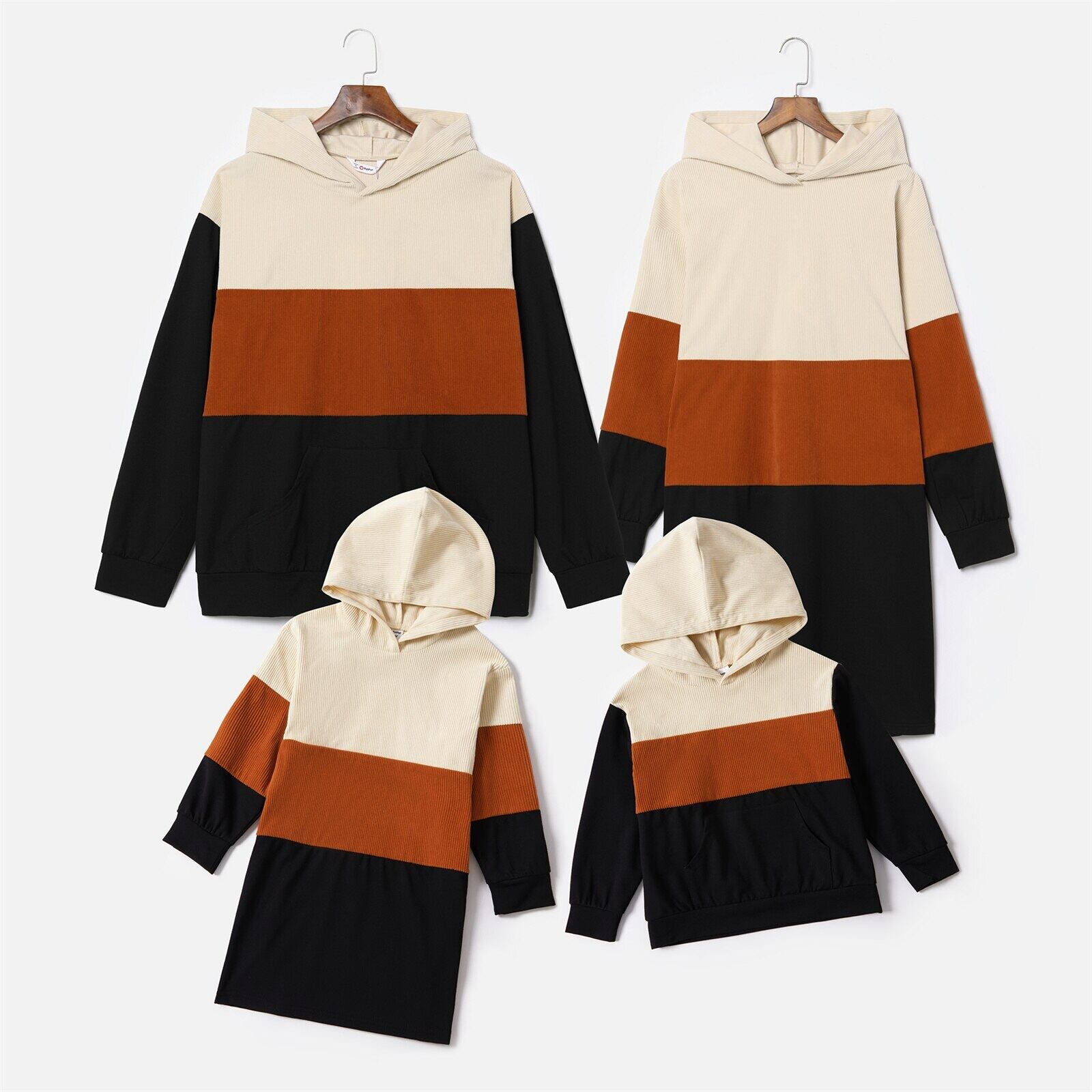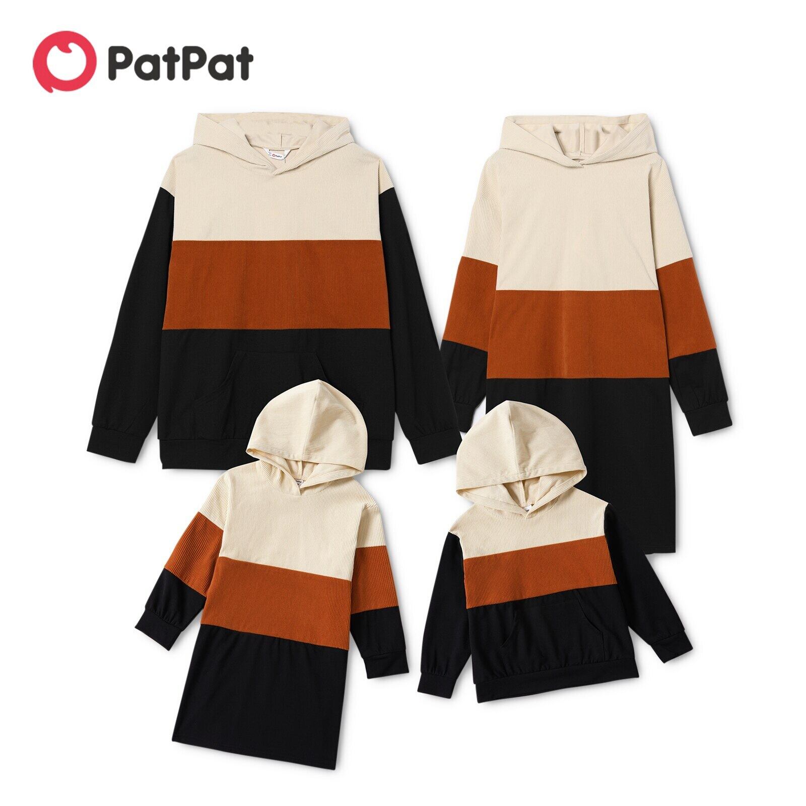新作 PatPat ファミリー お揃い カラーブロック 長袖 パーカー ワンピース&トップス セット