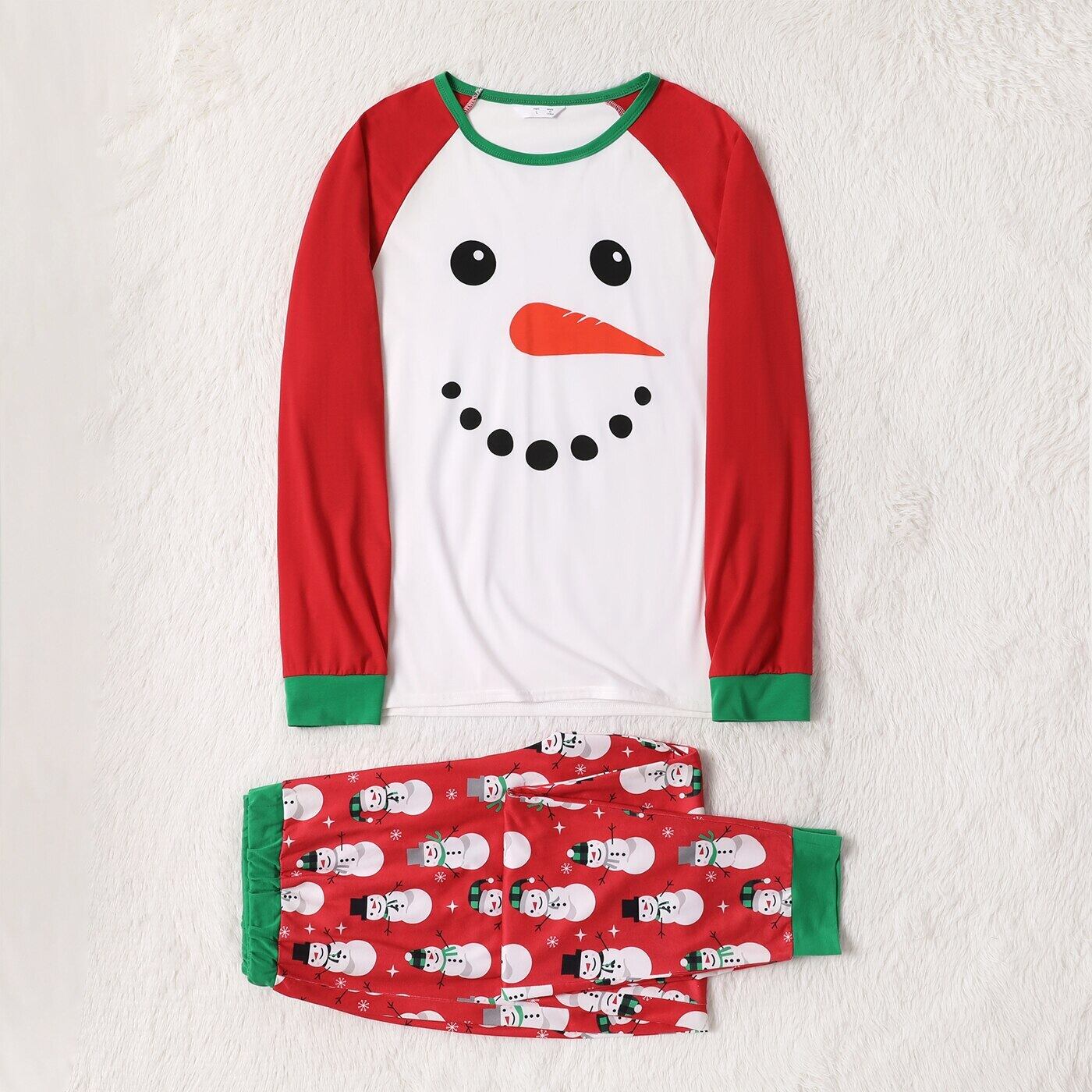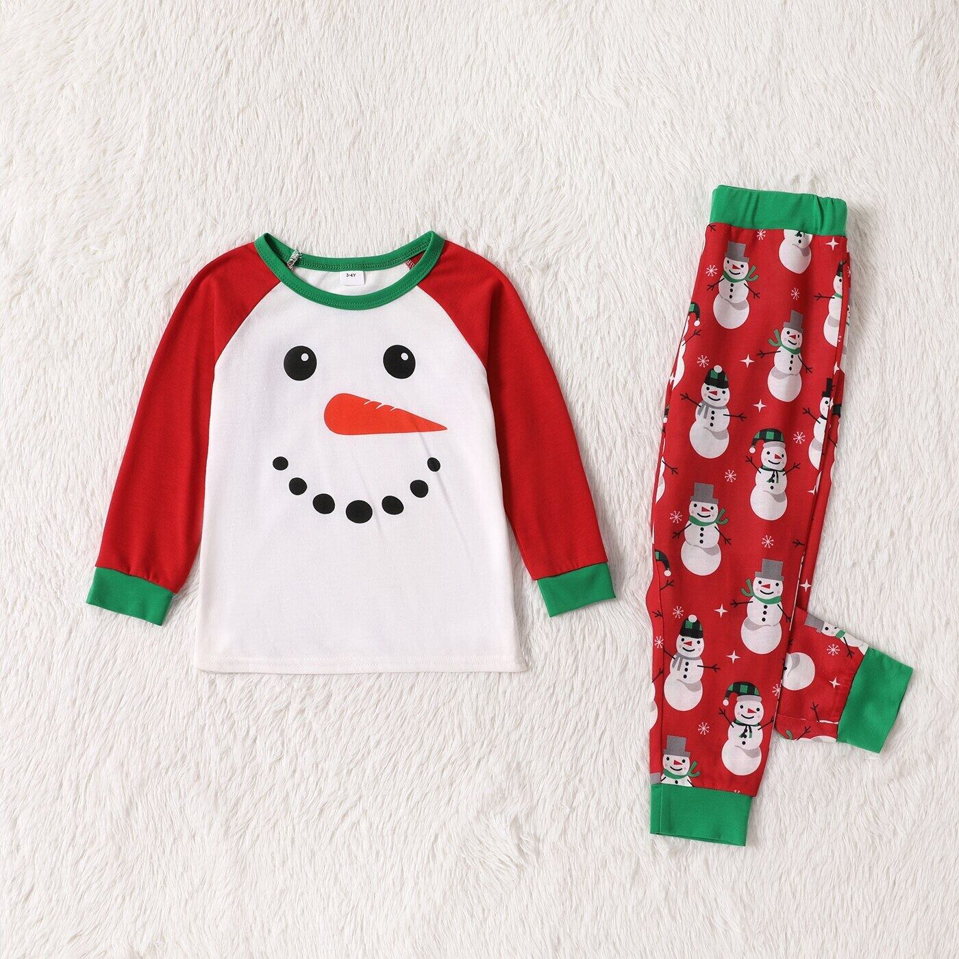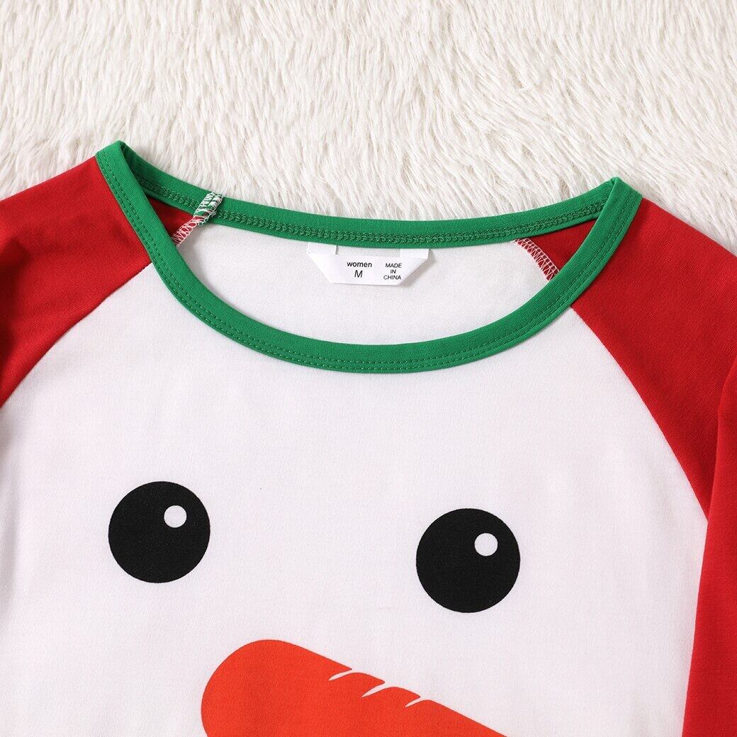 新作 PatPat クリスマス 雪だるま プリント レッド 家族おそろい ラグラン 長袖 パジャマ セット (防炎)