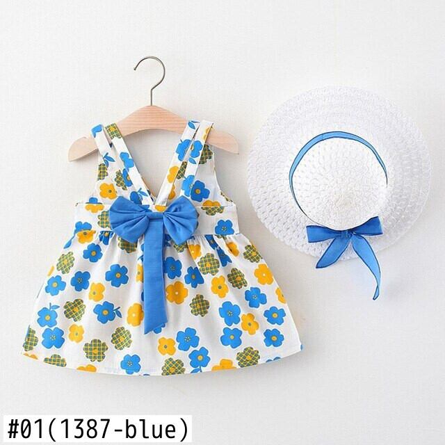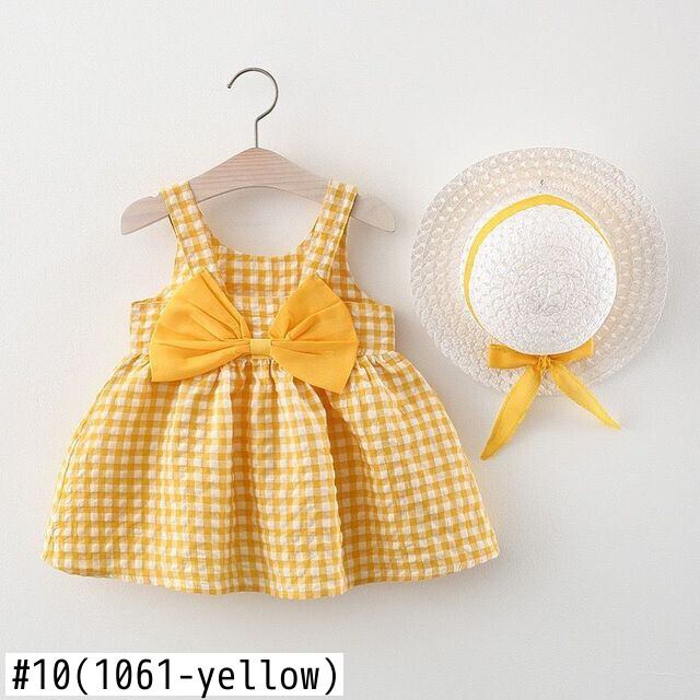 新作 2 ピース/セット女の子ドレス + Sunhat 綿 Comtable 子供のドレス夏ドレスグリッド女の子のノースリーブドレス女の赤ちゃんの服