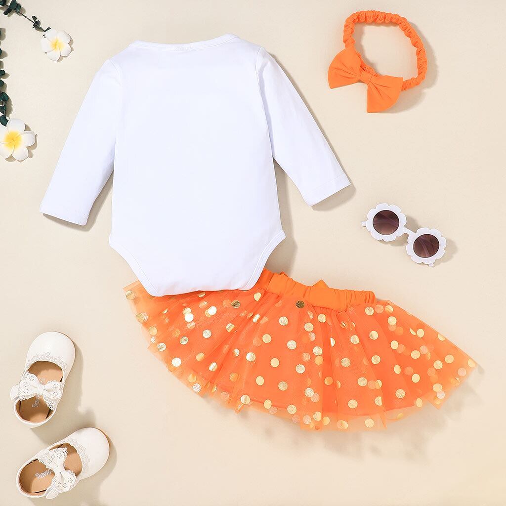 新作 PatPat s 3ピース 女の赤ちゃん レタープリント 長袖 ロンパースと水玉 チュチュスカート 服セット 女の赤ちゃん