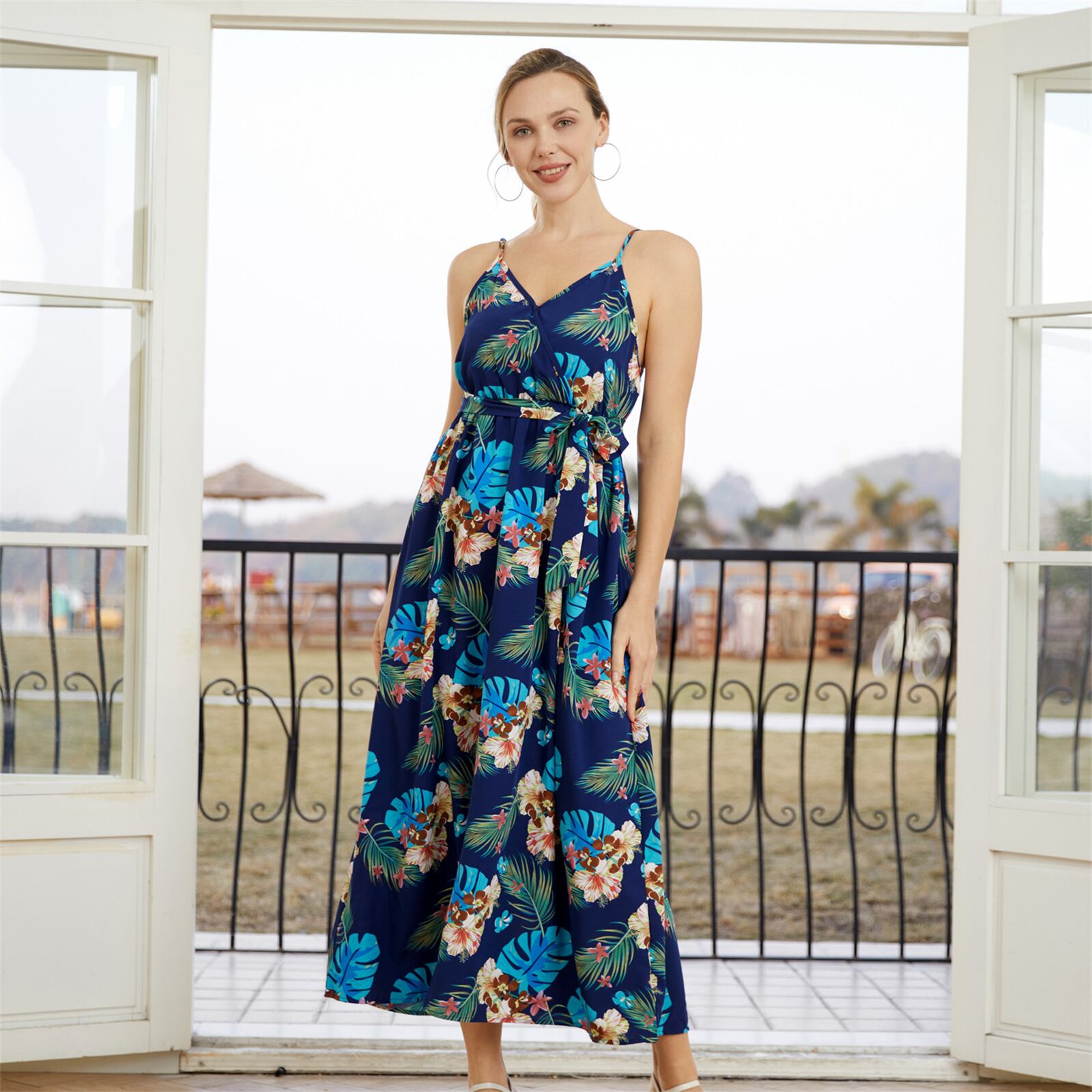 新作 PatPat オールオーバープラントプリント クロスラップ Vネック ノースリーブ スパゲッティストラップ マキシドレス ママと私