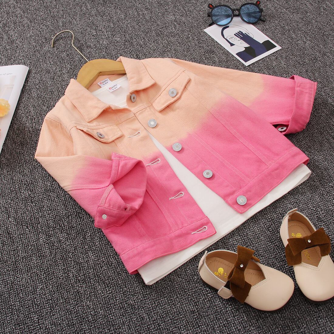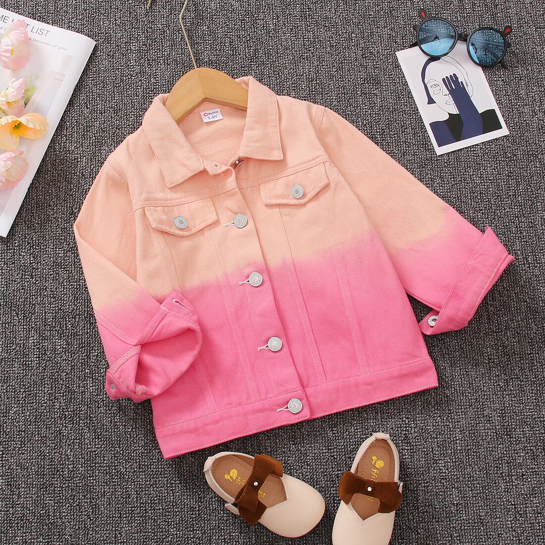 新作 PatPat 幼児 女の子 スウィート タイダイ カラーブロック ラペル カラー デニム ジャケット 秋冬 子供用 上着 コート ジャケット キッズ