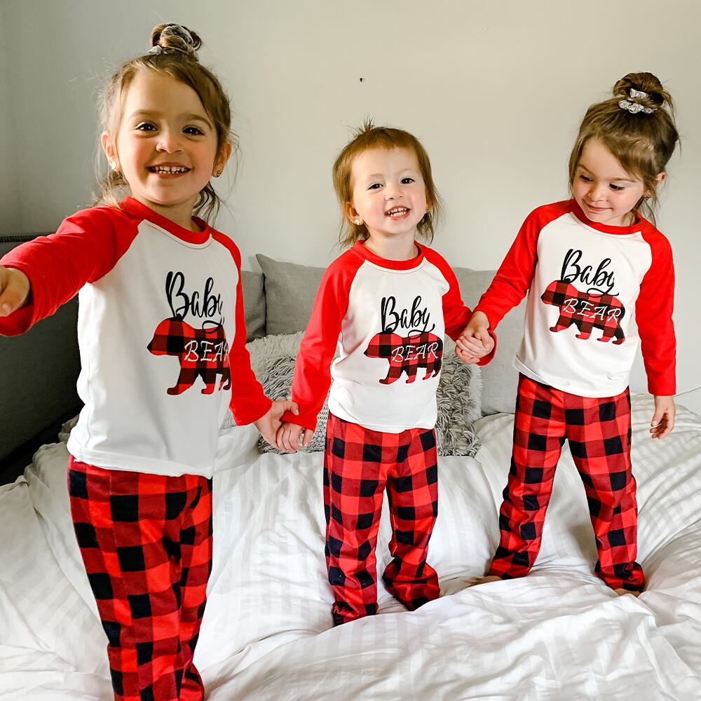 新作 パットパット チェック柄くまさん おそろいパジャマセット(防炎)