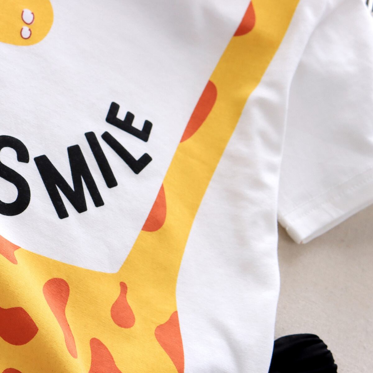 新作 PatPat 2ピース 幼児 男の子 遊び心のある文字 キリンプリント Tシャツとショーツセット