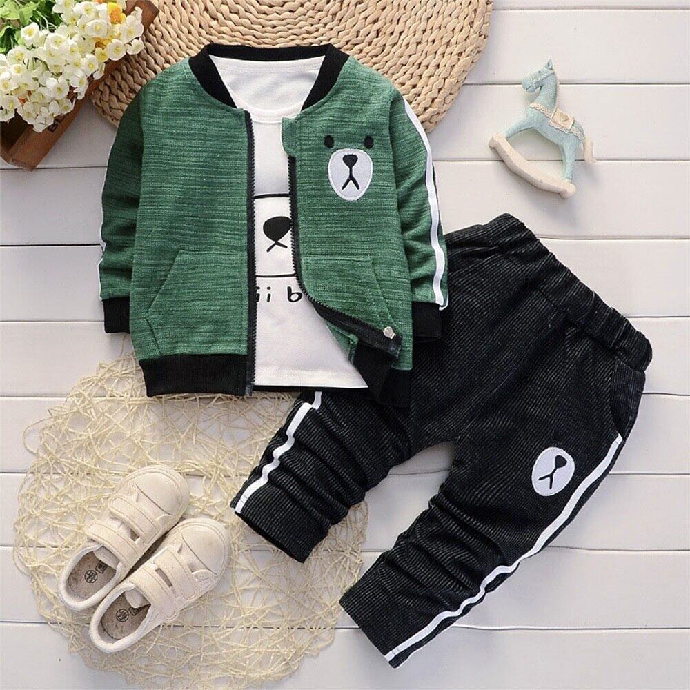 新作 PatPat 3pcs ベアプリント カラーブロック 長袖 ベビーセット