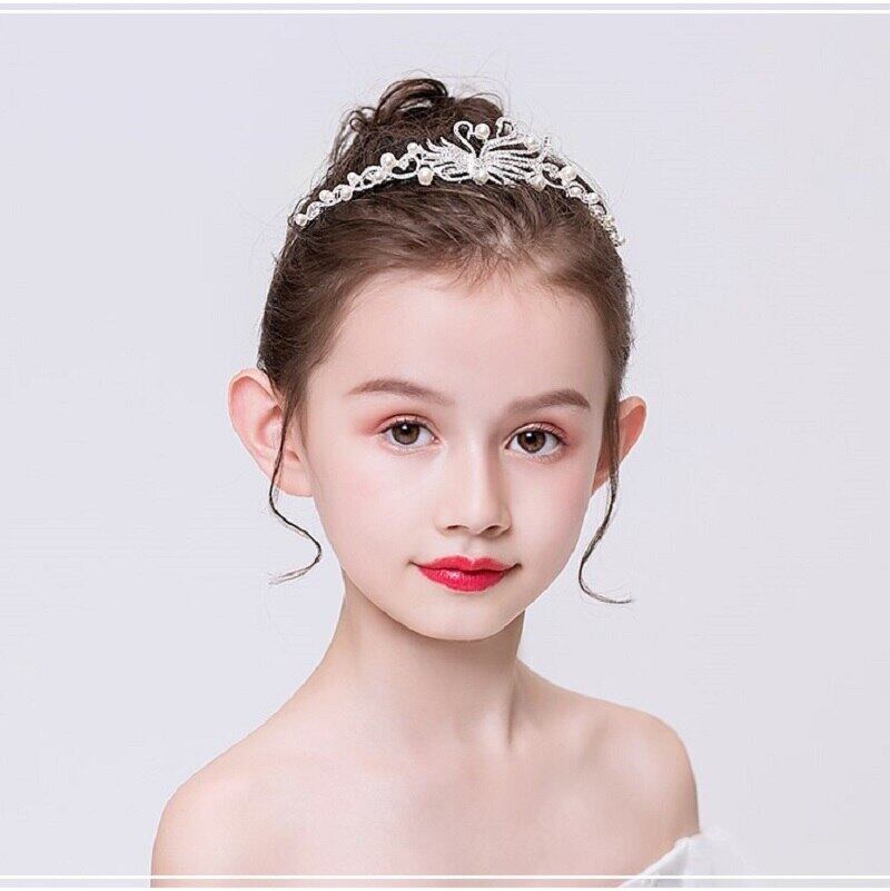 Dideyttawl 女の子帽子真珠金属ラインストンクラウン子供ヘッドバンドジュニア花嫁介添人誕生日ヘアアクセサリー