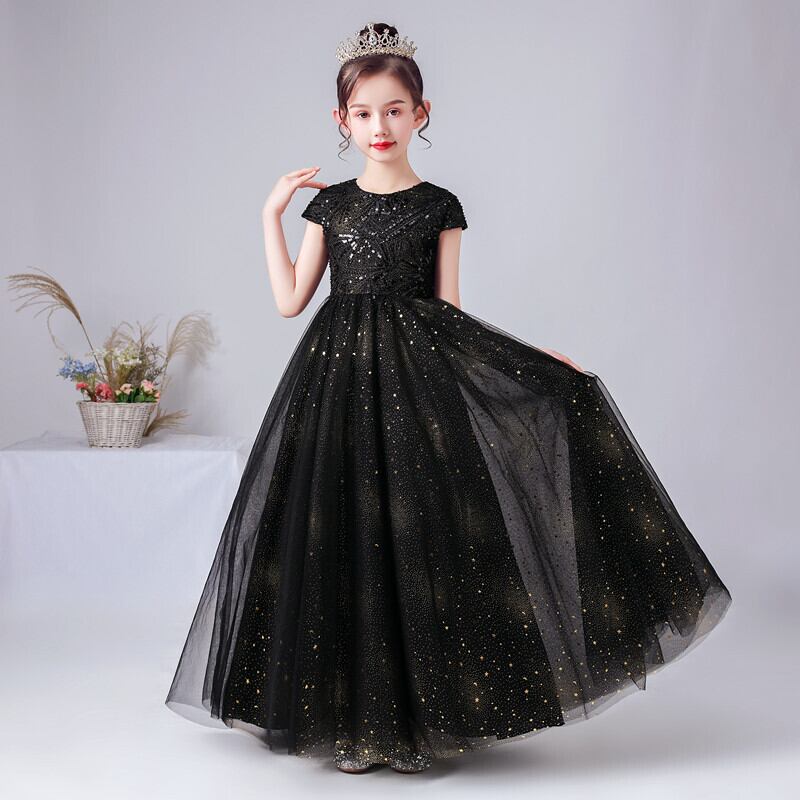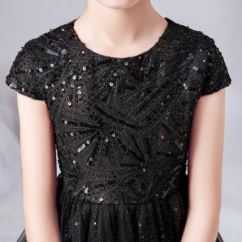 Dideyttawl キラキラ スパンコール ブラック フラワー ガール ドレス コンサート ドレス ジュニア チュール ロング 誕生日 パーティー ガウン