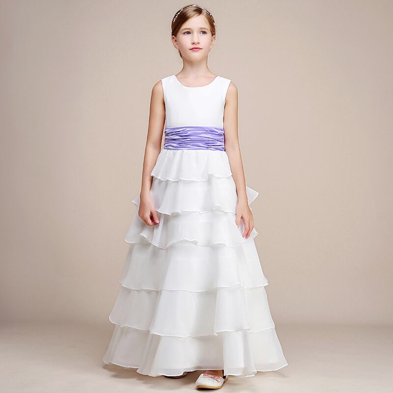 Dideyttawl 誕生日パーティードレス子供女の子 Tier mal 聖体拝領ガウンホワイトシフォンフラワーガールドレス結婚式