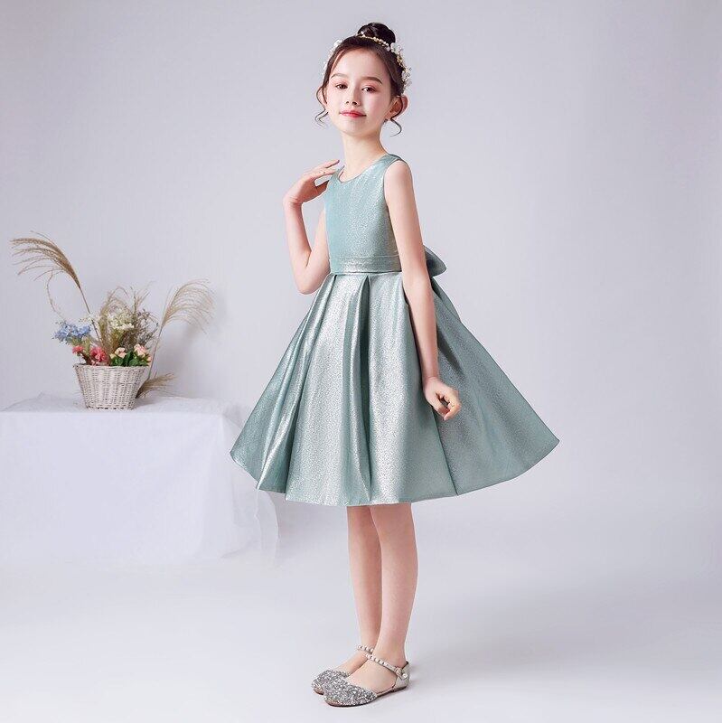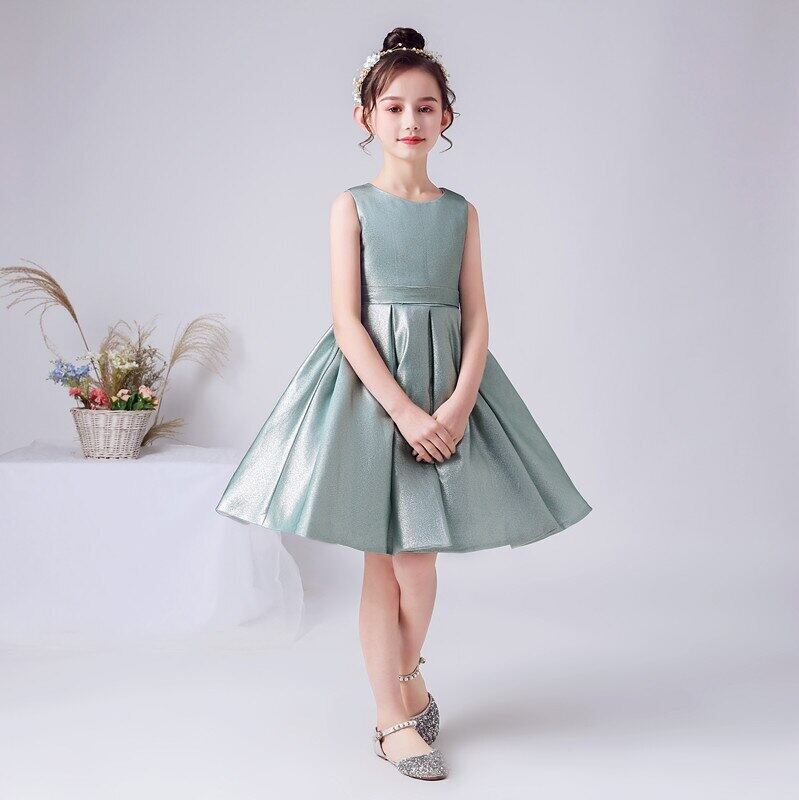 ショート女の子マルページェントガウンサテン子供フラワーガールドレス結婚式誕生日パーティーガウン初聖体グリーンサテン