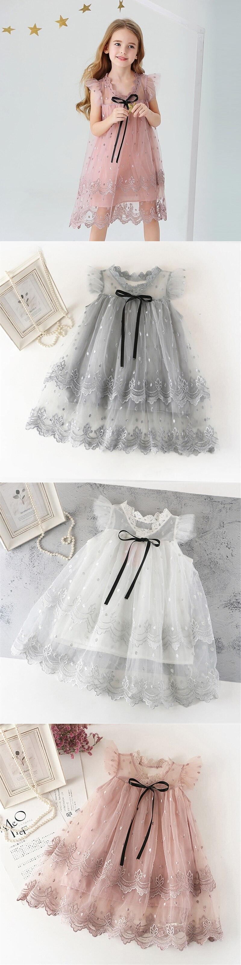 女の子の夏のドレス子供刺繍レースの花のウェディングパーティーガウン 3 4 5 6 7 8 歳の子供