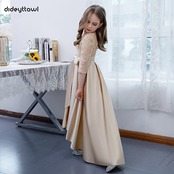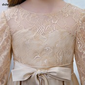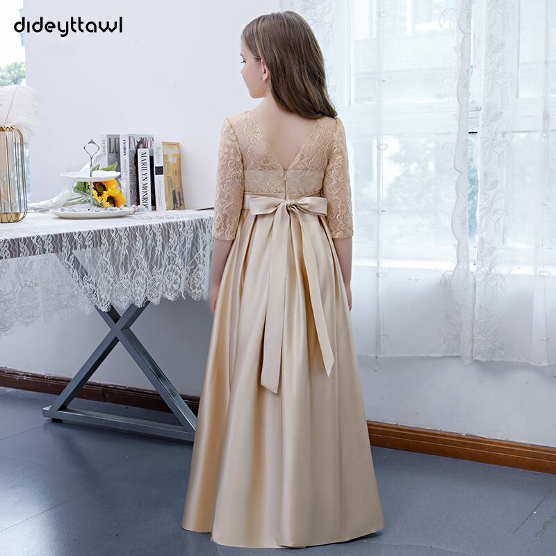 Dideyttawl シャンパンレース 2/3 スリーブフラワーガールドレス 2022 O ネックハイローロング子供の誕生日ページェントパーティーガウン
