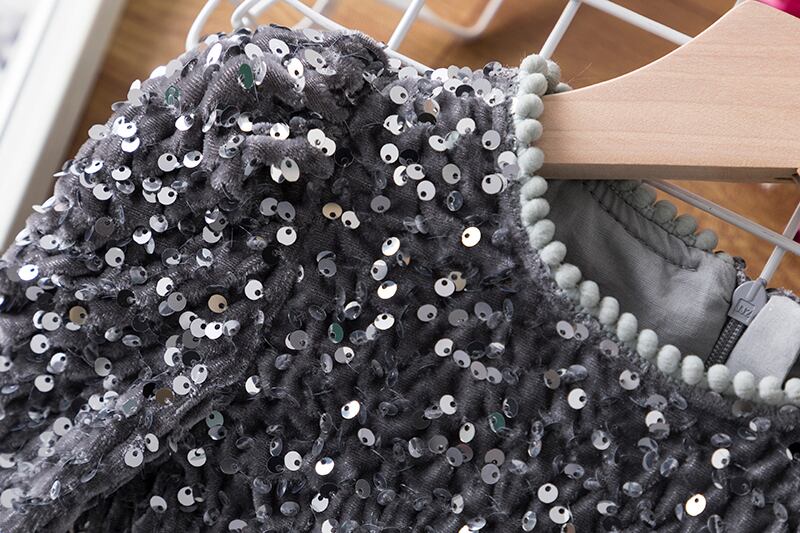 スパンコールの女の子のパーティードレス 3-8 歳の子供の誕生日の結婚式のイブニングウエディングドレス春秋長袖子供のドレス