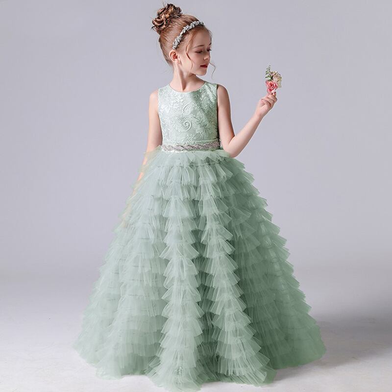 Dideyttawl チュールフラワーガールドレス 2022 ティアードガールズガウン誕生日パーティーノースリーブジュニアウエディングドレス