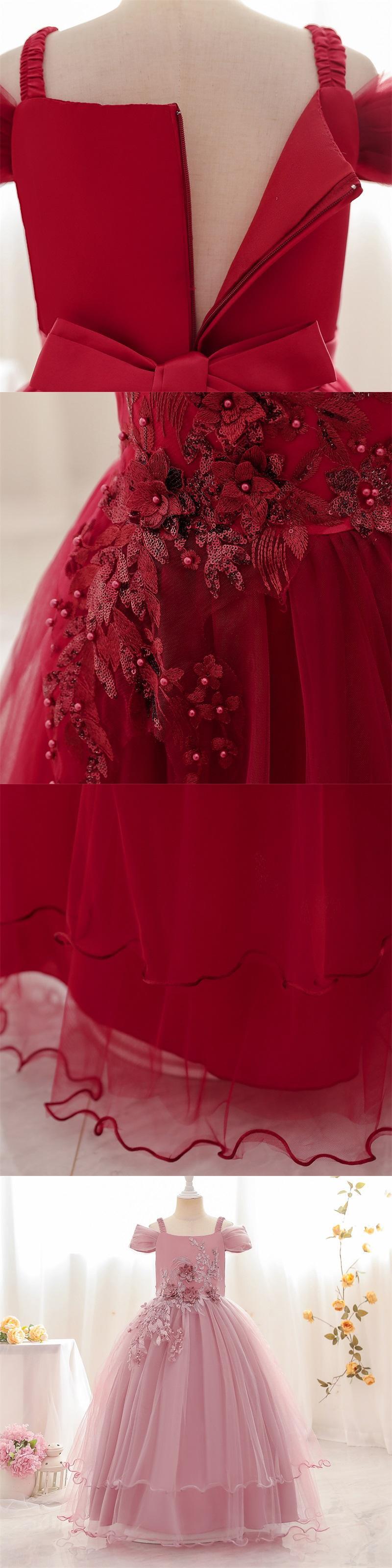 フラワーガールドレス結婚式パーティー子供チュチュロングウエディングドレス子供花嫁介添人イブニング服