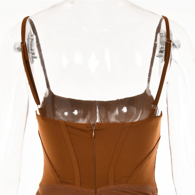 Mozision コルセットシャーリングマキシドレス女性スパゲッティストラップノースリーブバックレスジッパーロングドレス Vestido