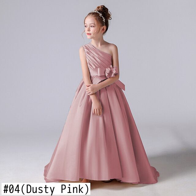 Dideyttawl ベビーブルーワンショルダーサテンフラワーガールドレス結婚式マルパーティーボールガウン子供のイブニングドレス